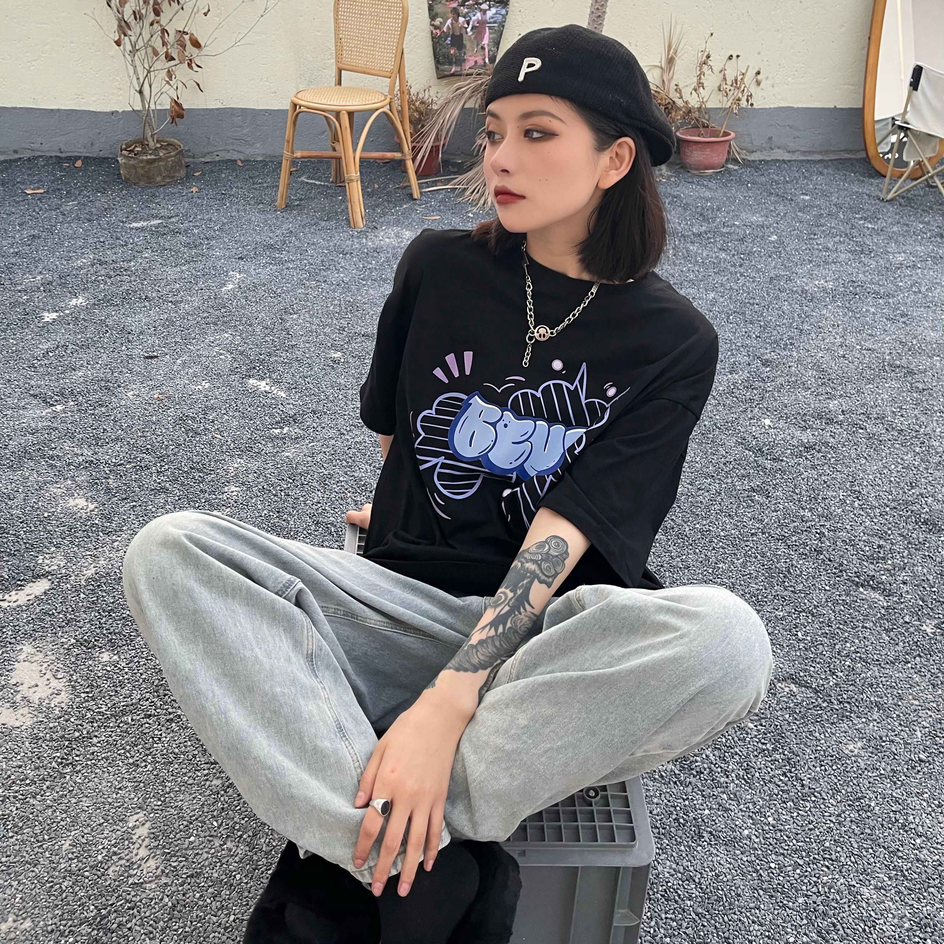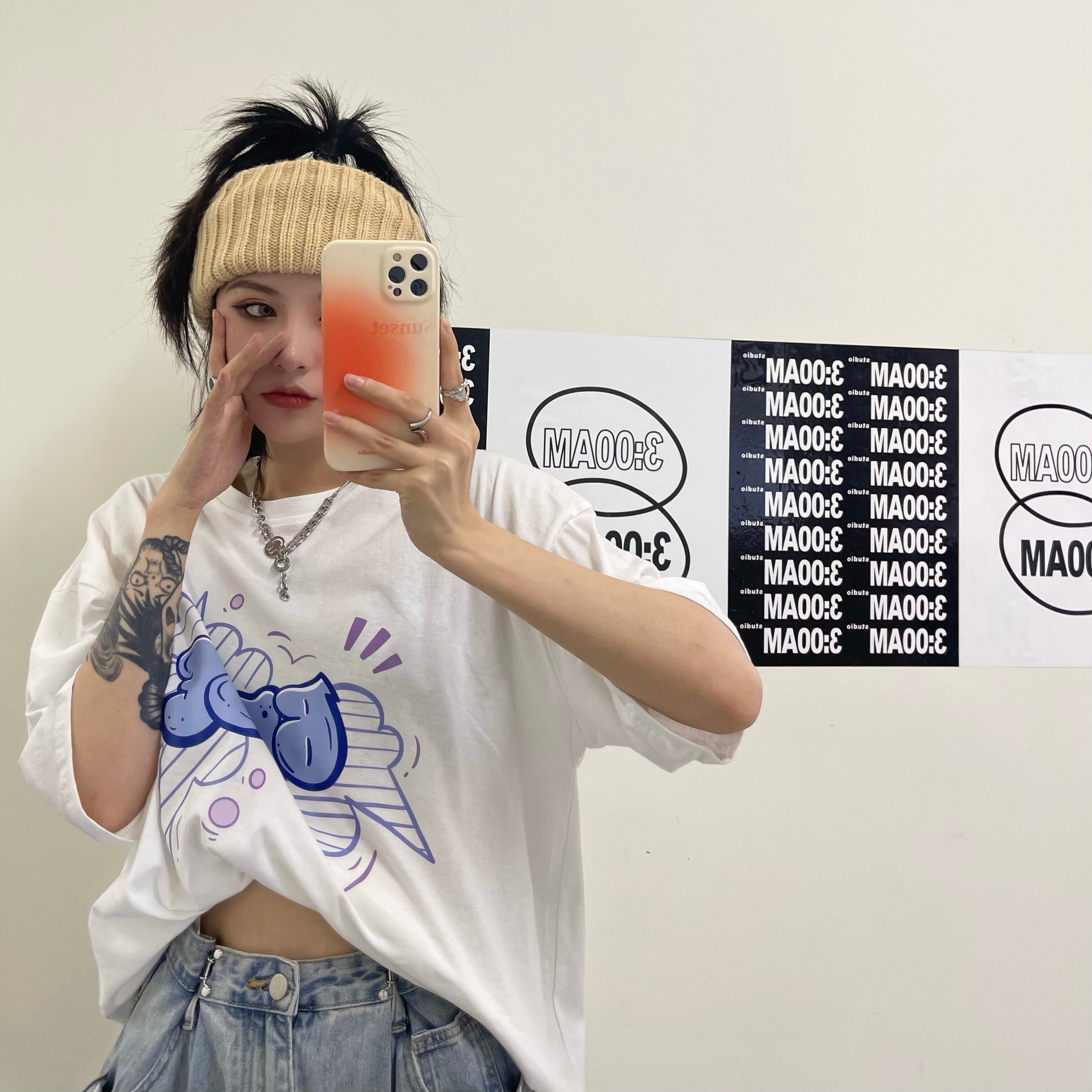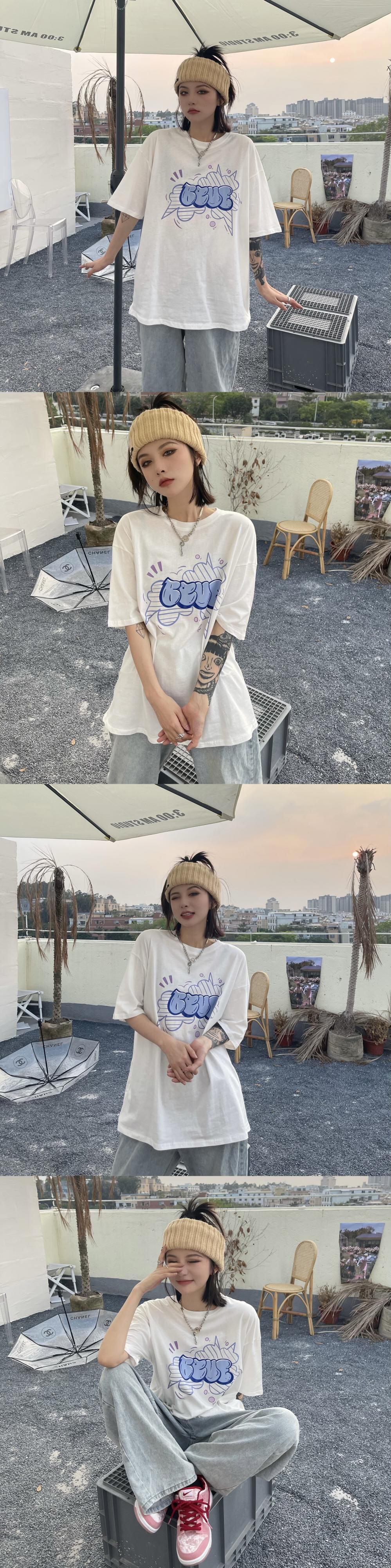 Tシャツレディース夏服韓国ファッショントレンドスタイルプリントルーズトップス 原宿 夏物 ボーイズ デーモン95010503000
