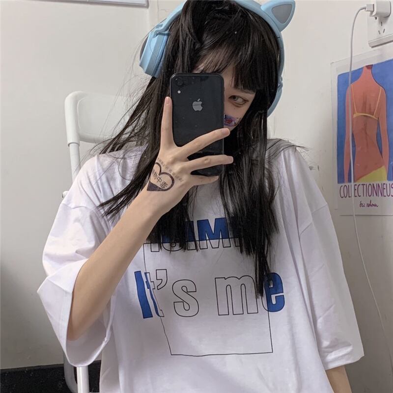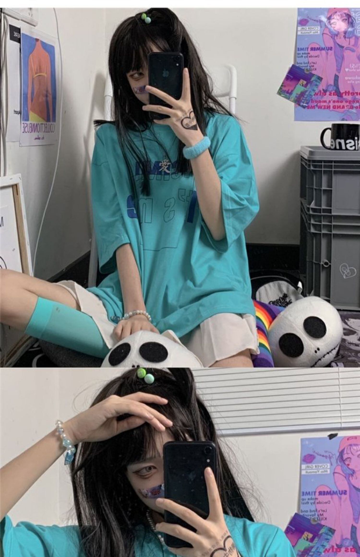 夏服トップス 韓国ファッショントレンドプリントルーズラウンドネックTシャツ 夏物 Oネック スタイル デーモン93522193333