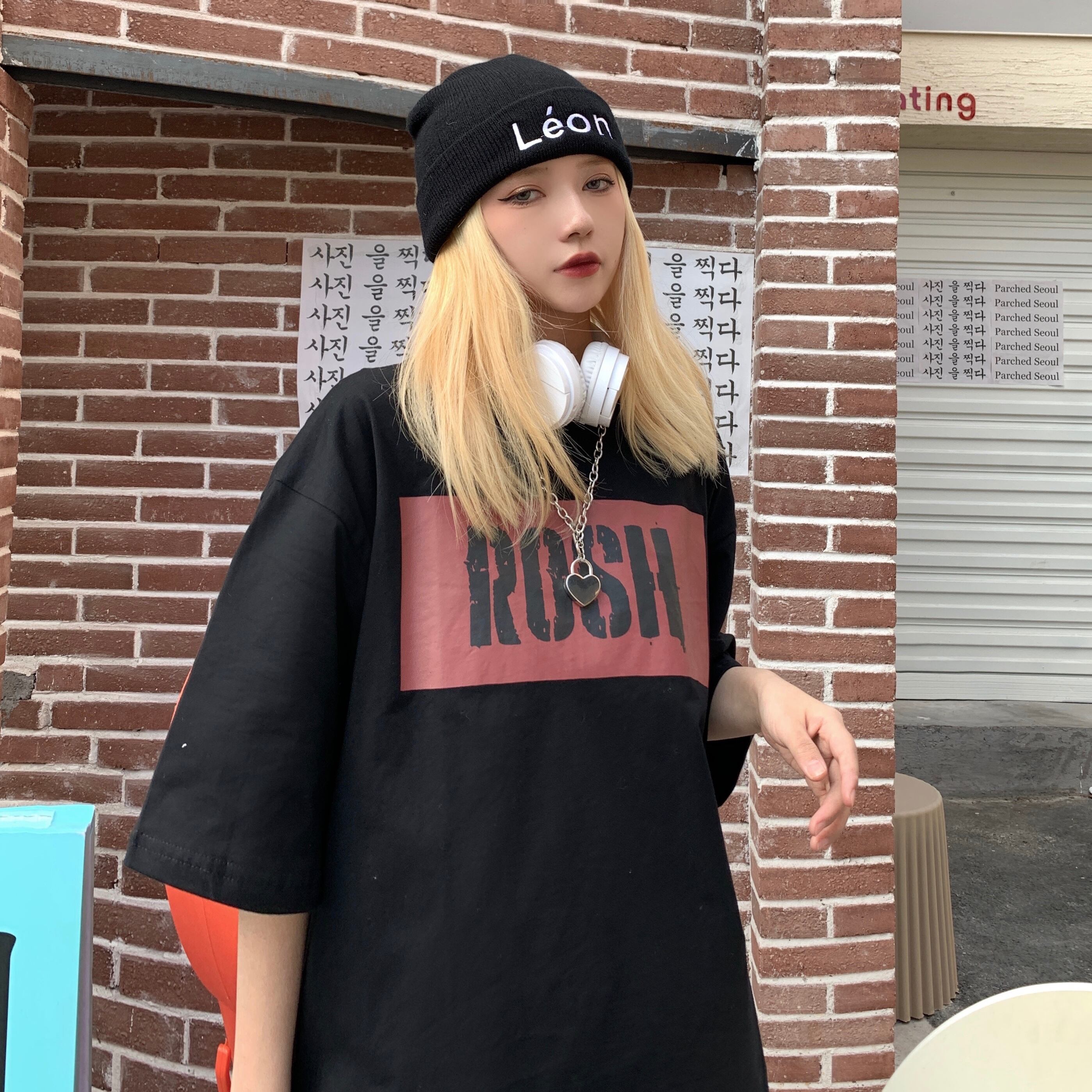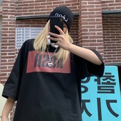 夏服シャツ レディース韓国ファッショントレンドプリントルーズホワイトTシャツ 夏物 スタイル デーモン50264531819
