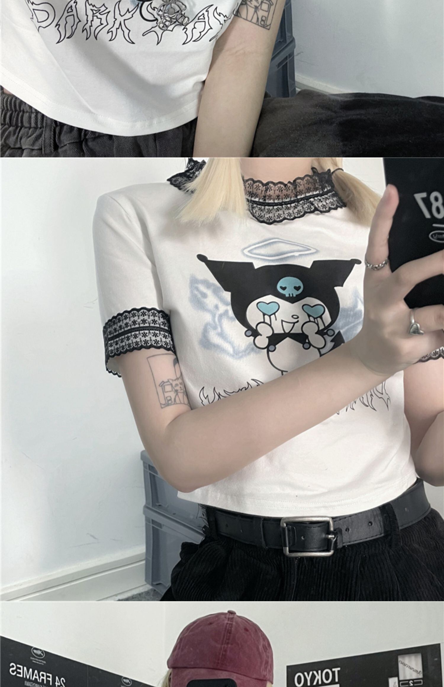 ショートTシャツレディース夏服韓国ファッショントレンドレーストップス 夏物 ステッチ ボーイズ デーモン6684555044