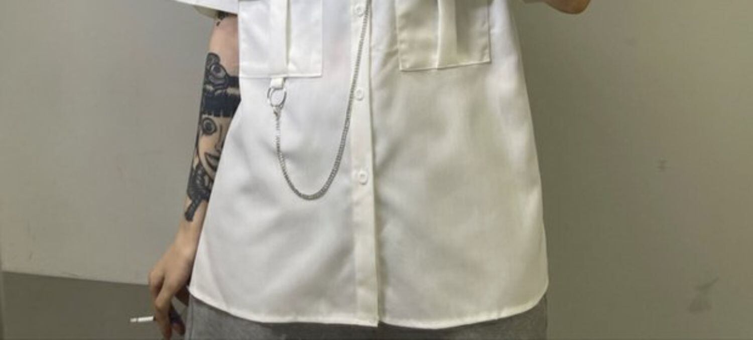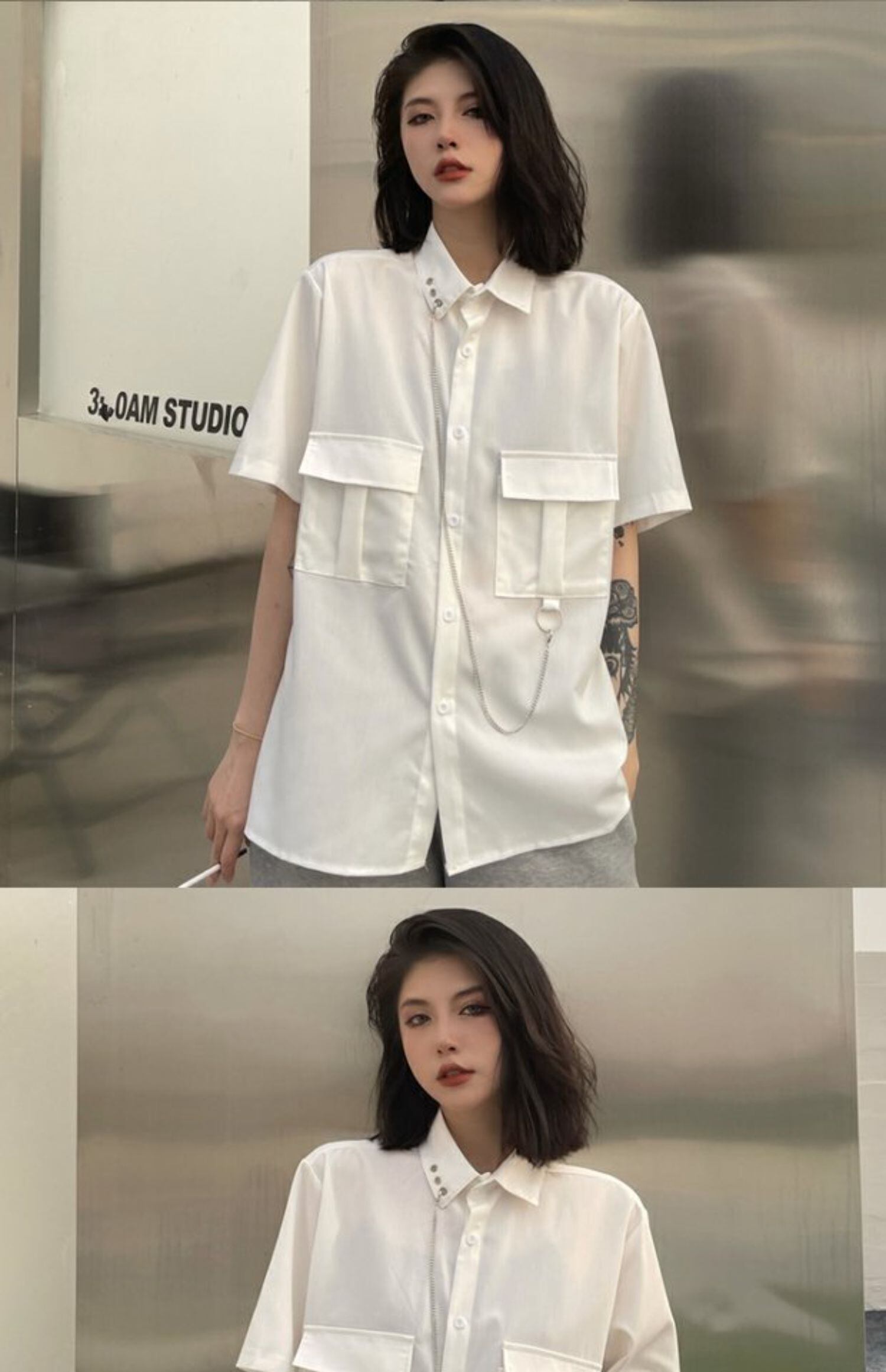 シャツ レディース夏服トレンドチェーン ホワイトルーズ 夏物 デーモン3875286399