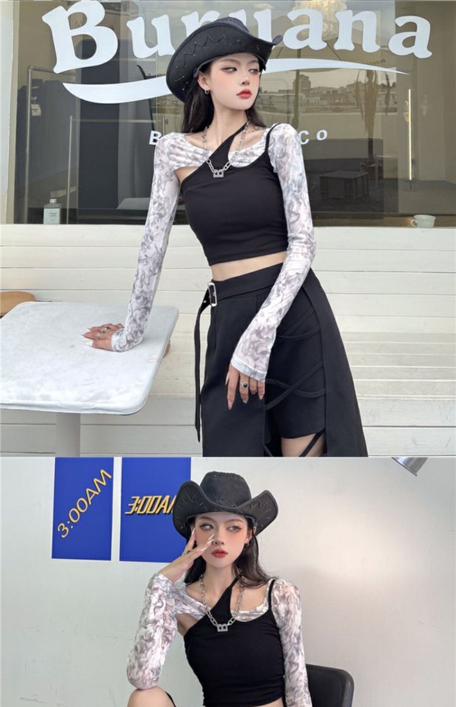 色:斜めショルダースリング,絞り染めの日焼け止めブラウス