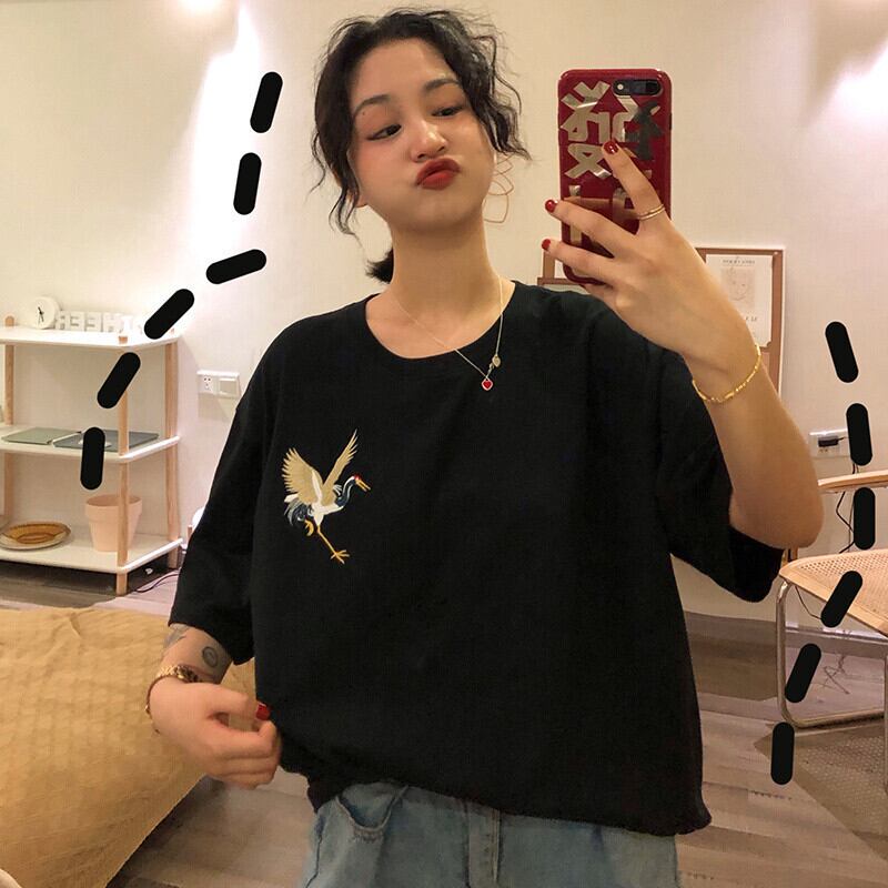 スプリング夏服スリーブプリントTシャツレディーストレンドルーズラウンドネック 春物 夏物 Oネック CHIL91820374329