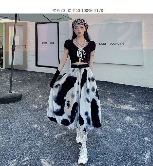 夏服スカート レディース韓国ファッショントレンドスタンダードハイウェストウェスト レトロ 夏物 スタイル ウエスト ミドル丈 デーモン25721505368
