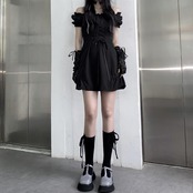 ワンピースレディース夏服トレンドギャザーハイウェストウェストショートスカート レース 夏物 ウエスト デーモン26008906082