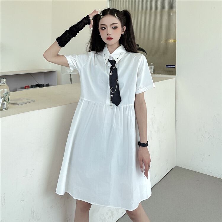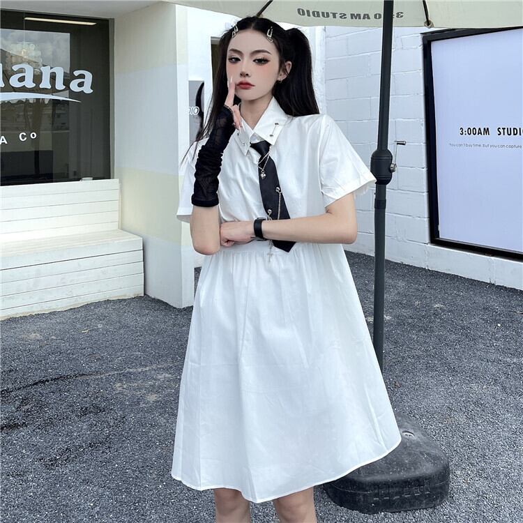 夏服シャツ ワンピースレディーストレンドハイウェストウェストホワイト薄手スカート 夏物 ボーイズ ウエスト ミドル丈 デーモン82802806431