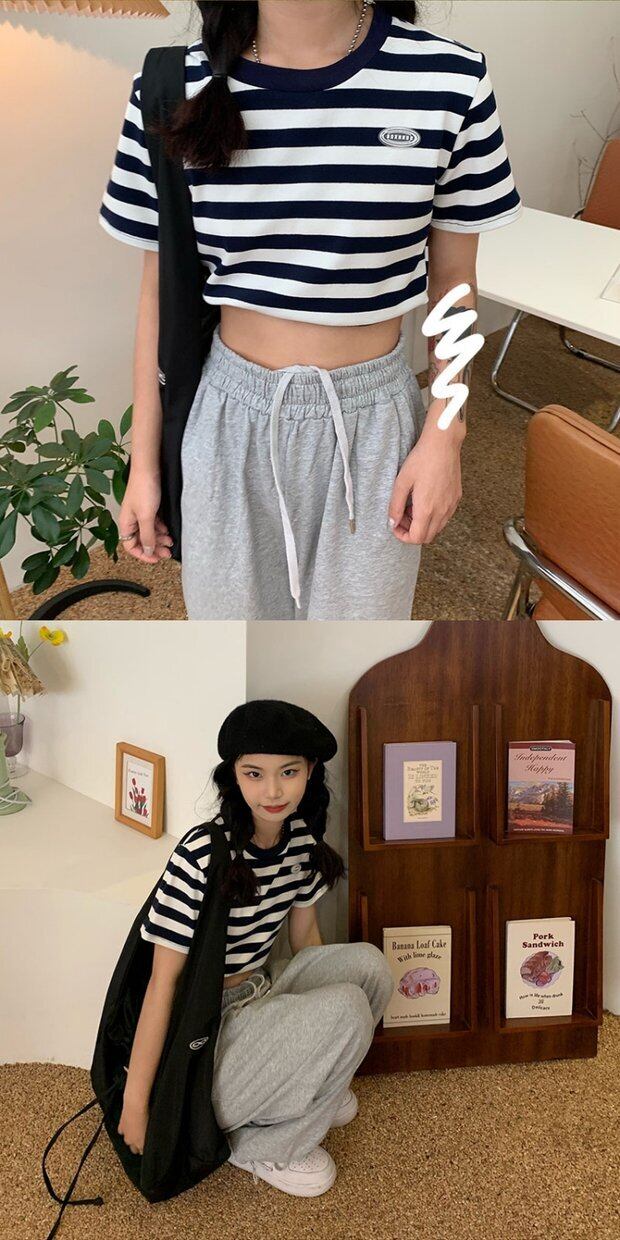 夏服レディーストレンドストライプショートTシャツトップス 夏物 ボーイズ デーモン33786253897