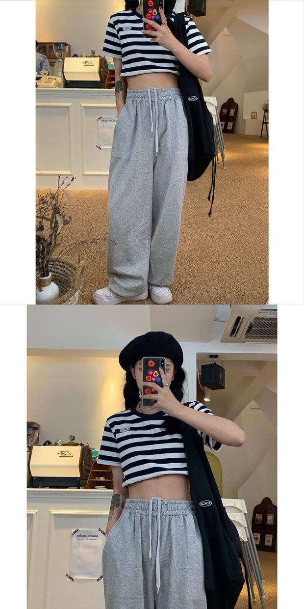 色:ストライプTワンサイズ,H180グレーパンツS,H180グレーパンツM