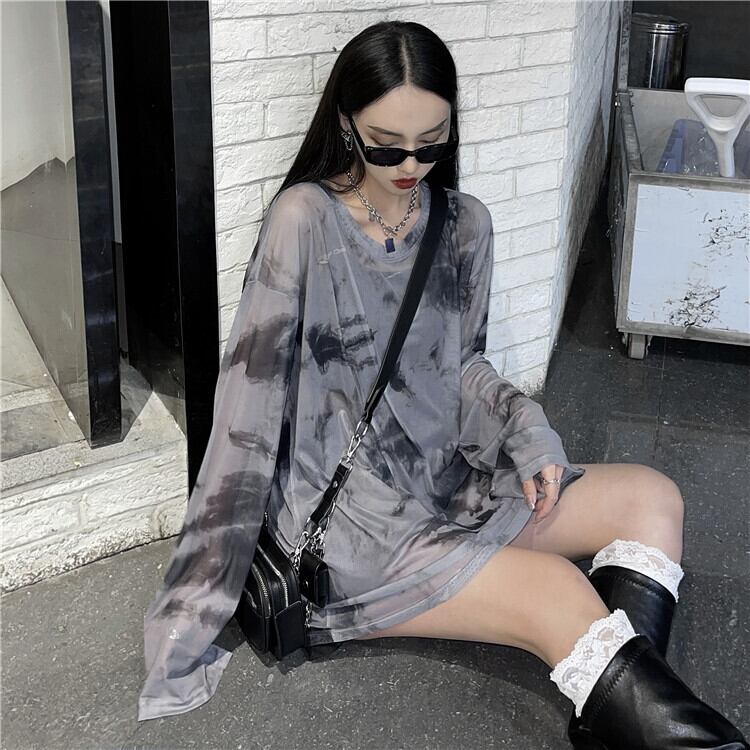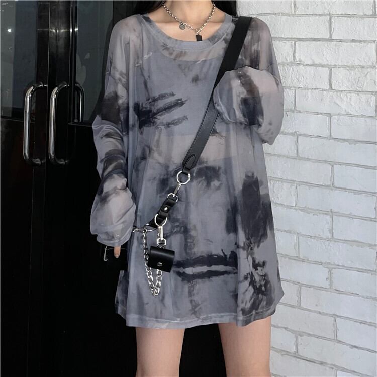 ルーズメッシュTシャツブラック ロング 長袖 CHIL81978679115