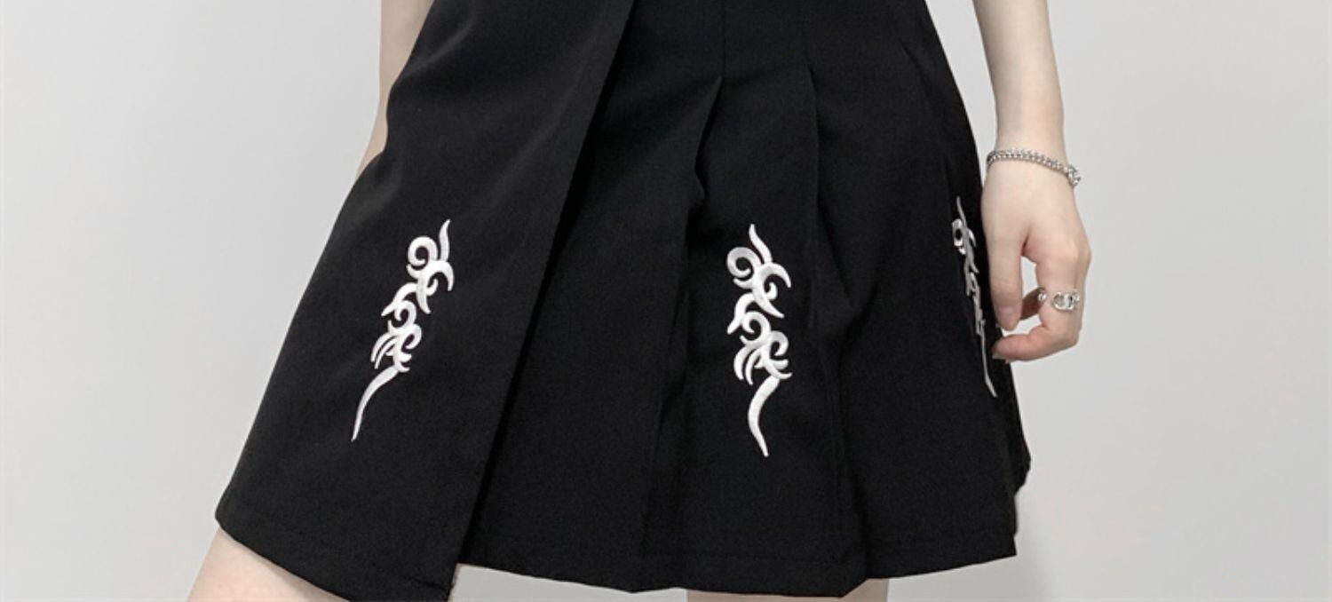 ウェストプリーツスカート レディース夏服韓国ファッショントレンド刺繍ブラック薄手Aライン 夏物 スタイル ウエスト デーモン41832165163