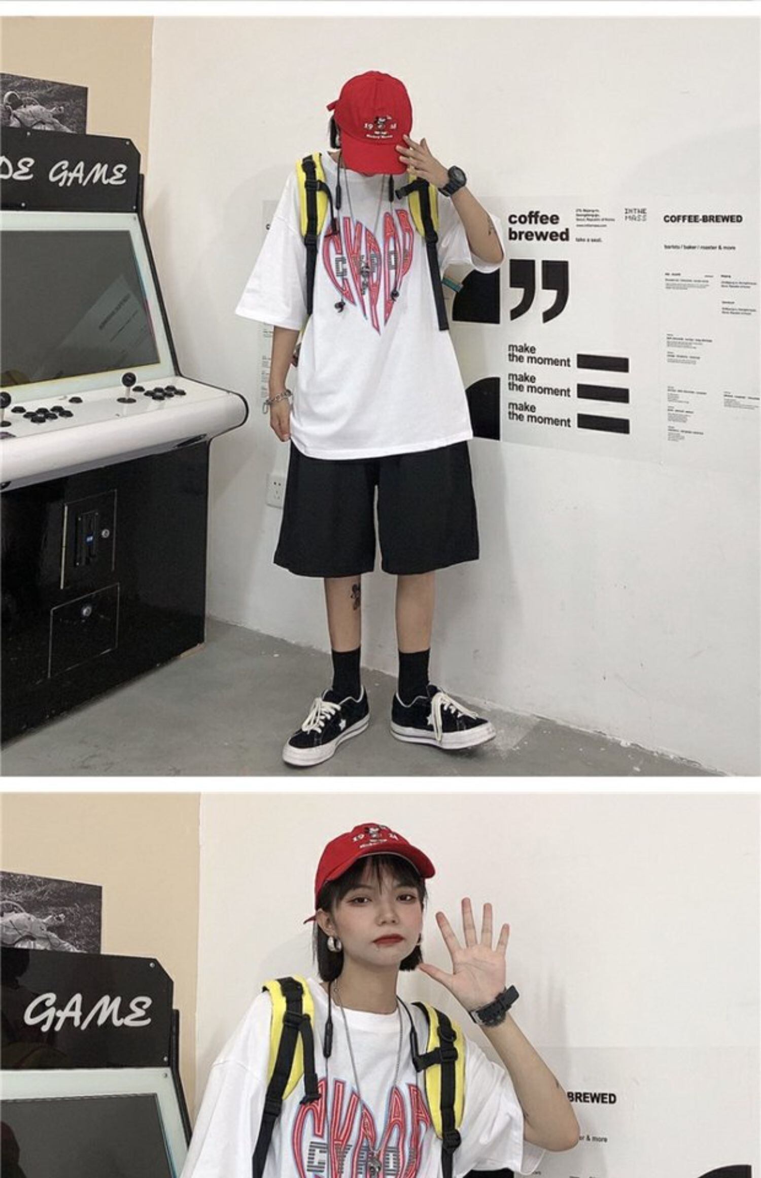 Tシャツレディース夏服韓国ファッショントレンドスタイルプリントルーズトップス 原宿 夏物 ボーイズ デーモン73477649573