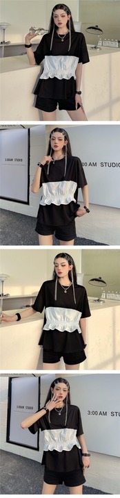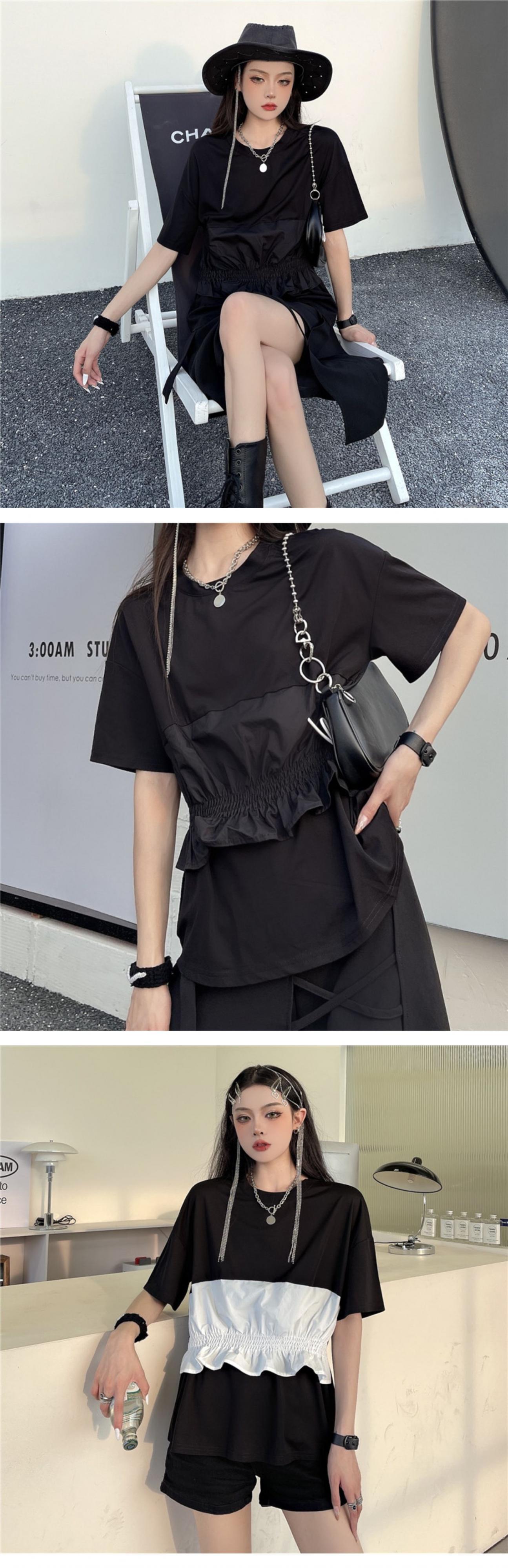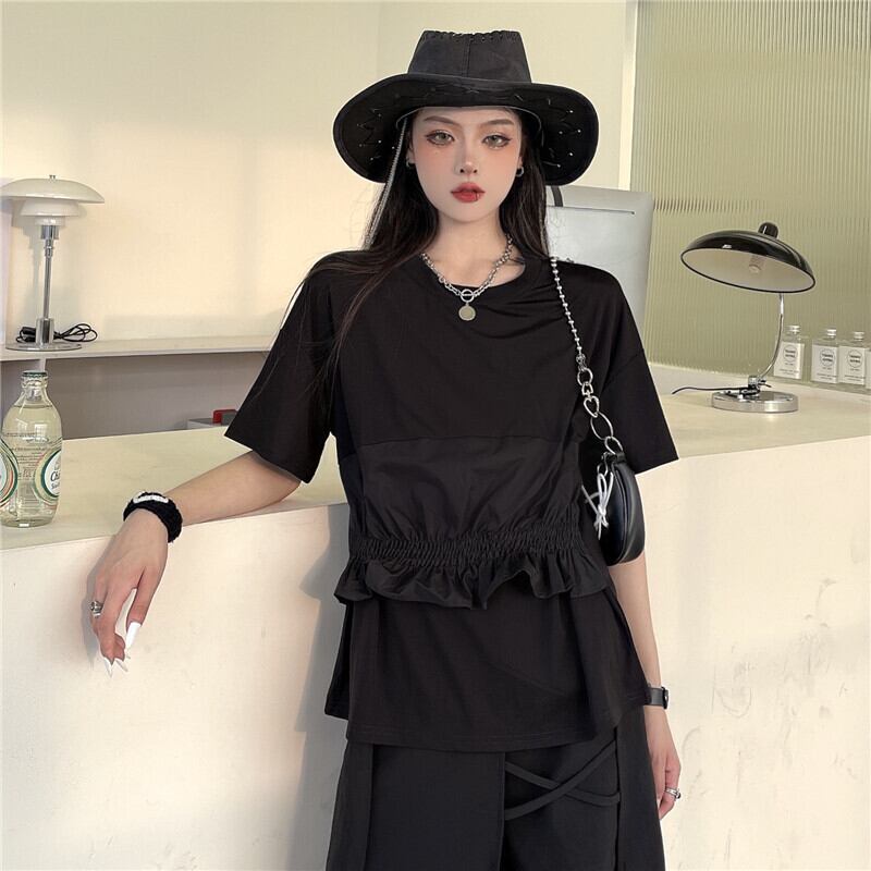 ブラックトップス レディース夏服韓国ファッショントレンドダークルーズTシャツ 夏物 ステッチ ボーイズ スタイル デーモン86264319113