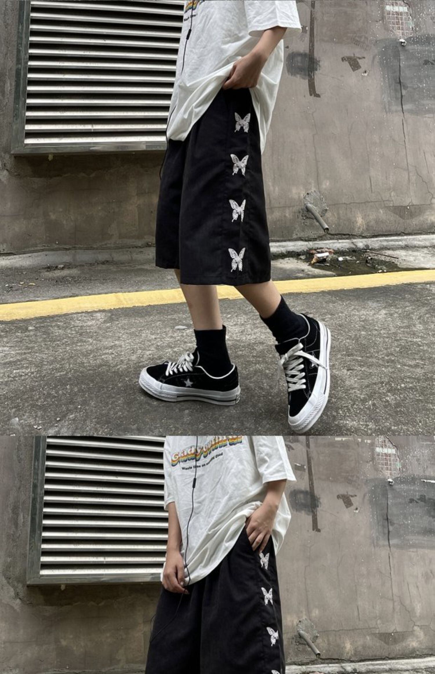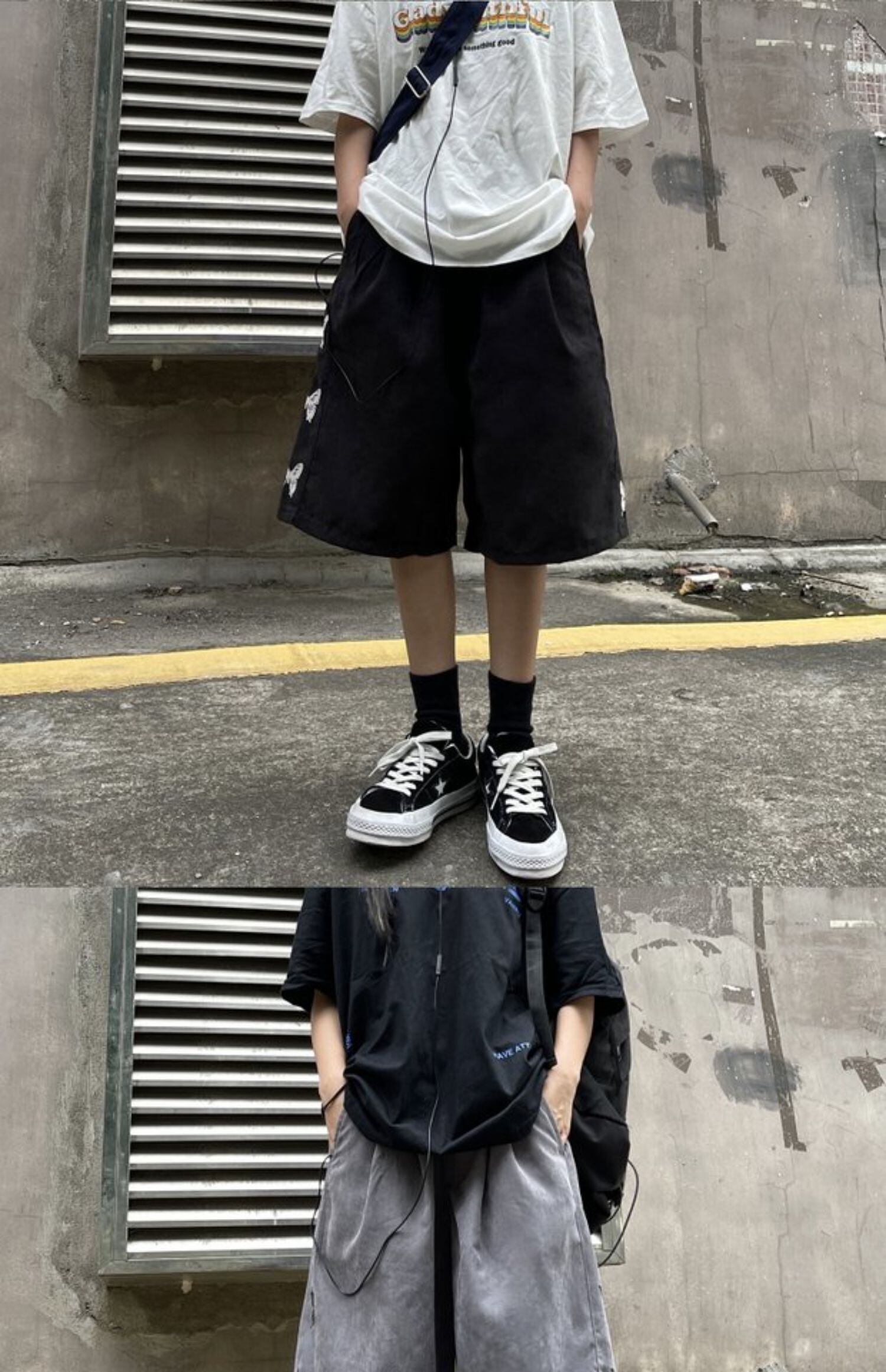 夏服ショーツ レディーストレンドButterflyデザイン プリント柄パンツ ルーズハイウェストウェストワイドレッグ 原宿 夏物 ワイドパンツ ボーイズ ウエスト デーモン87483298374
