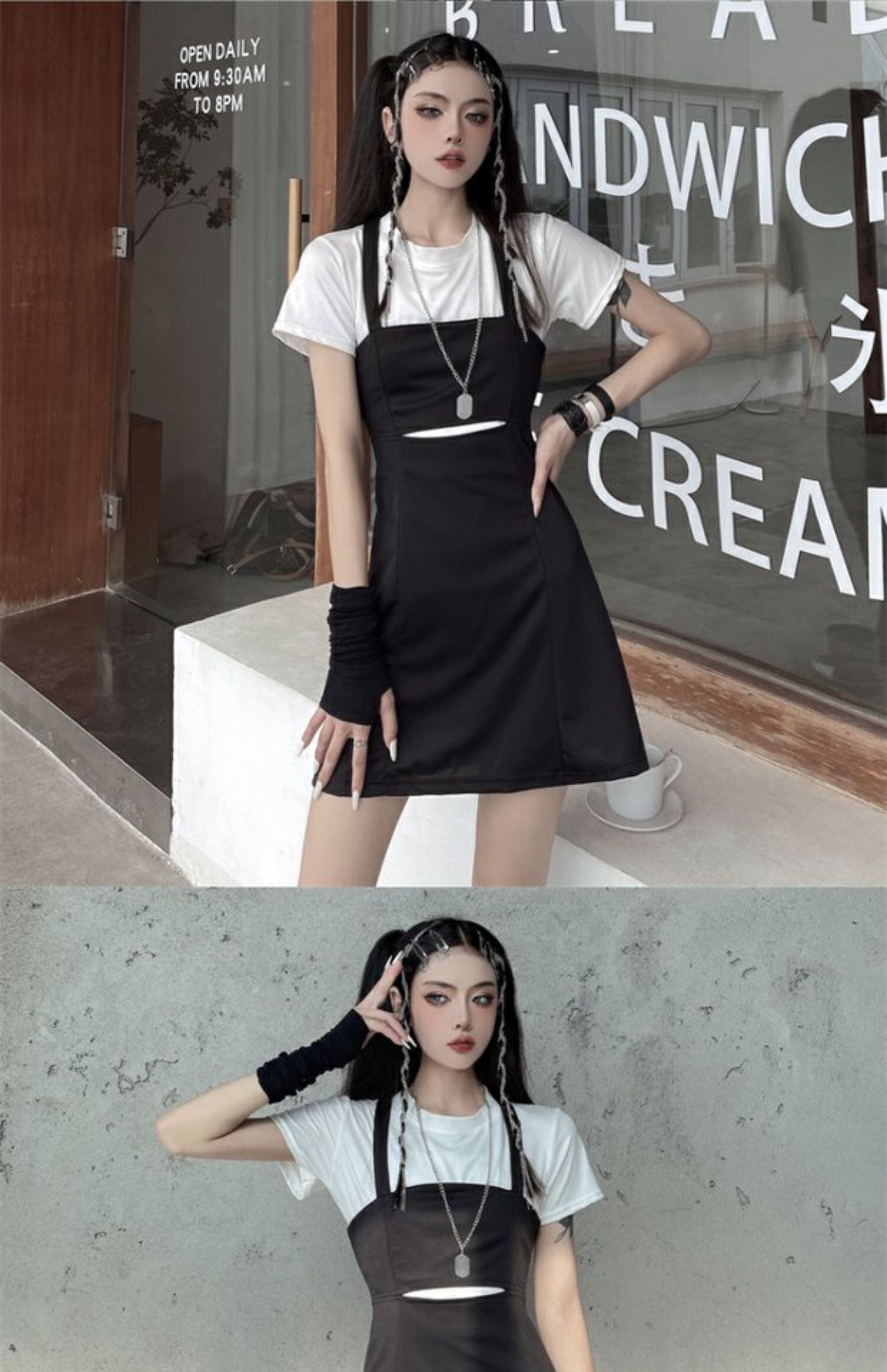 夏服スカート レディース韓国ファッショントレンドハイウェストウェストワンピースゆったりTシャツ 大人ガーリー スウィート キュート カジュアル 夏物 スタイル ウエスト デーモン50994174164