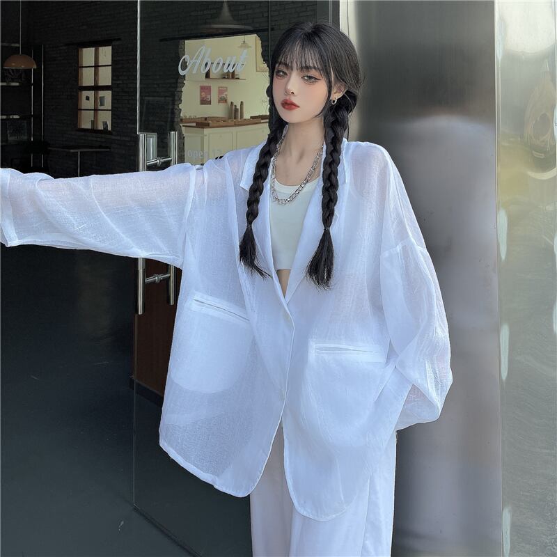 夏服ジャケット レディース韓国ファッショントレンド薄手ルーズブラックカーディガン 夏物 スタイル デーモン14159210018
