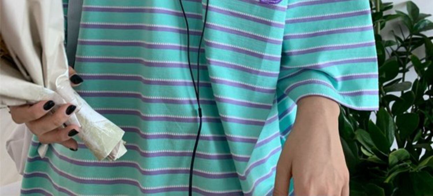 夏服Tシャツレディース韓国ファッショントレンドカラールーズストライプ半袖スリーブトップス ショート ハーフスリーブ 夏物 ボーイズ スタイル デーモン43317944158