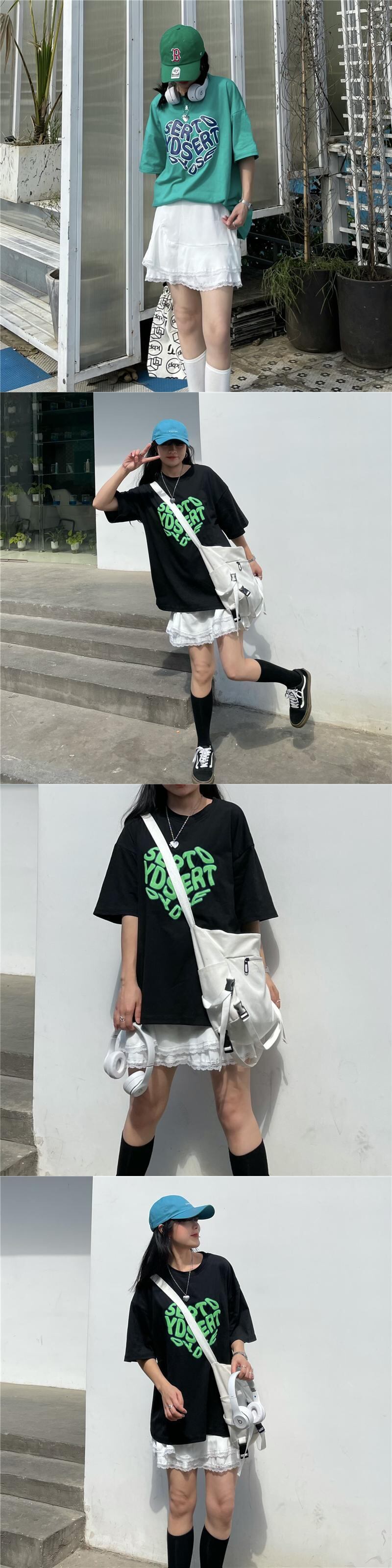 夏服Tシャツレディース韓国ファッショントレンドプリントホワイトルーズトップス 夏物 スタイル デーモン74809493570