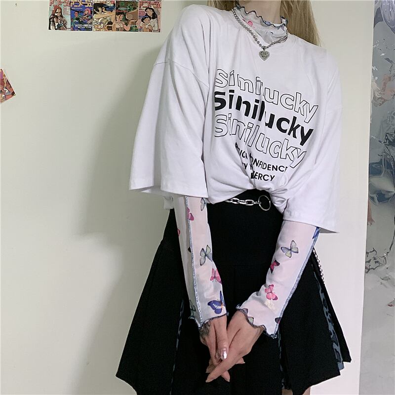 夏服Tシャツシャツ レディース韓国ファッショントレンドスタンダードButterflyデザイン ルーズ薄手メッシュ ロング レトロ 夏物 スタイル 長袖 デーモン25706875745