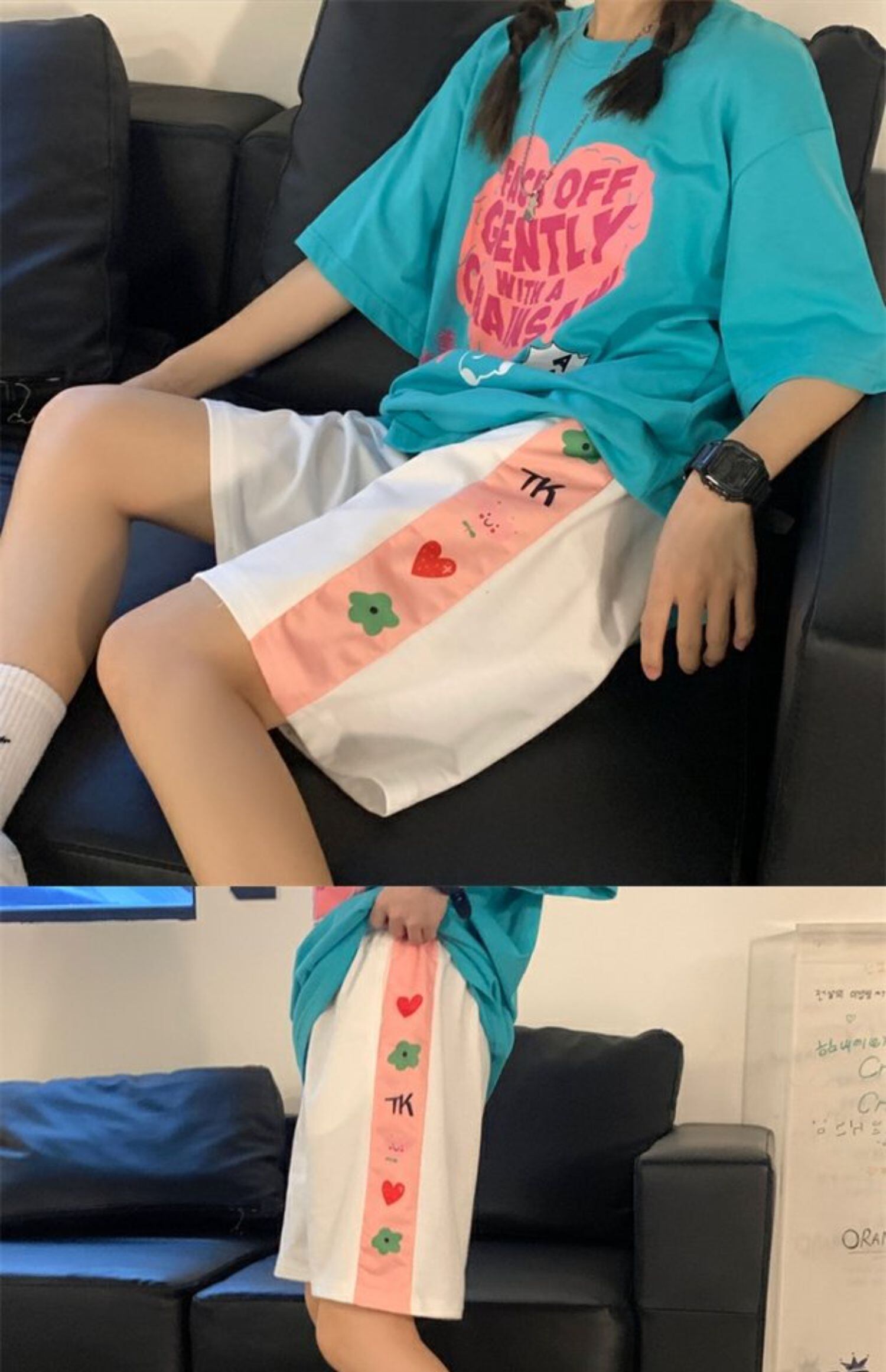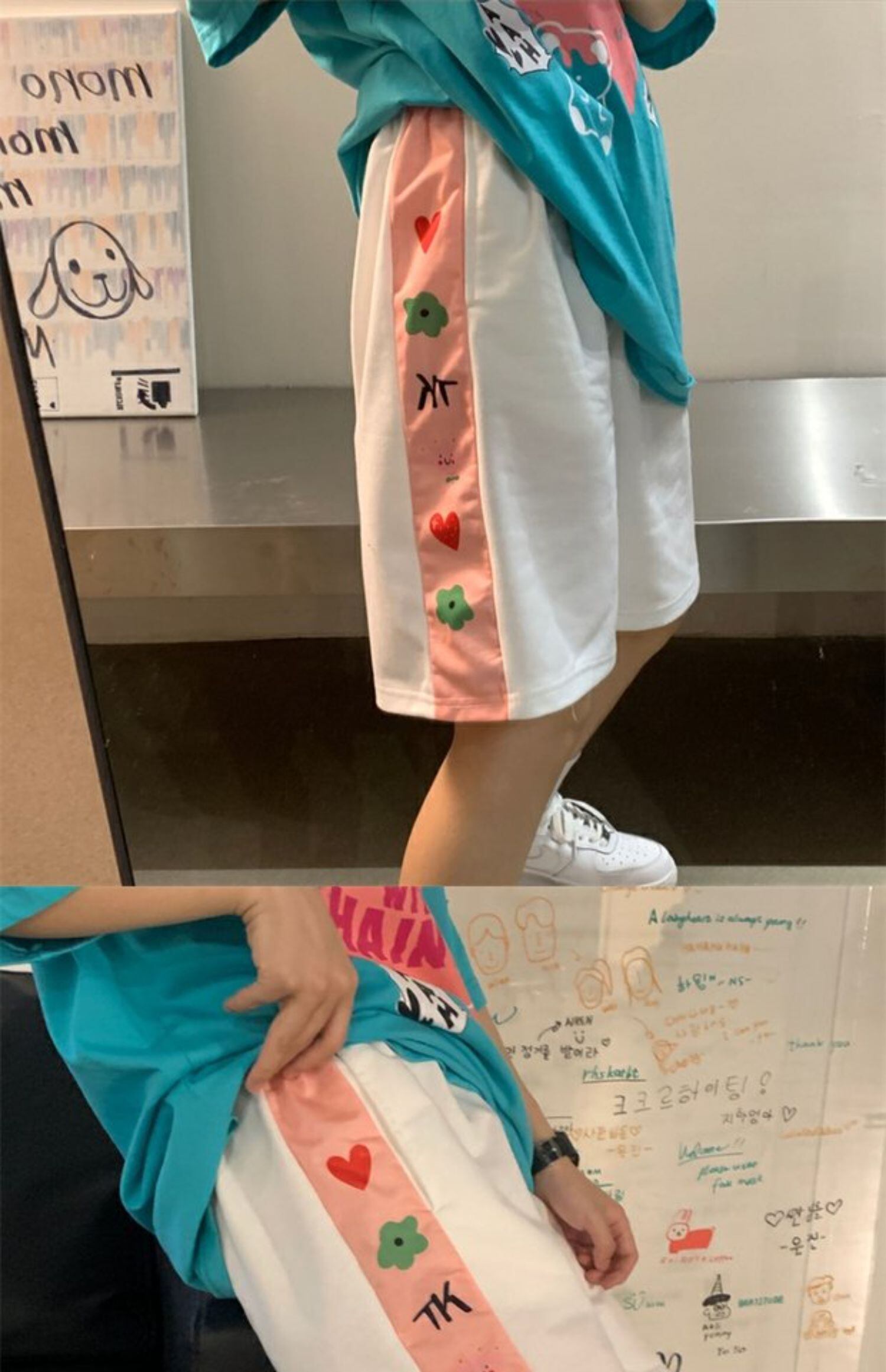 ショーツ レディース夏服トレンドFlowerデザイン プリントパンツ ルーズ ピンク 夏物 フラワーデザイン ボーイズ デーモン72372227580