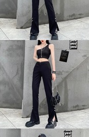 ワイドレッグパンツ レディース夏服トレンドブラックハイウェストウェストルーズカジュアル ストリート 夏物 ワイドパンツ ウエスト デーモン3574895776