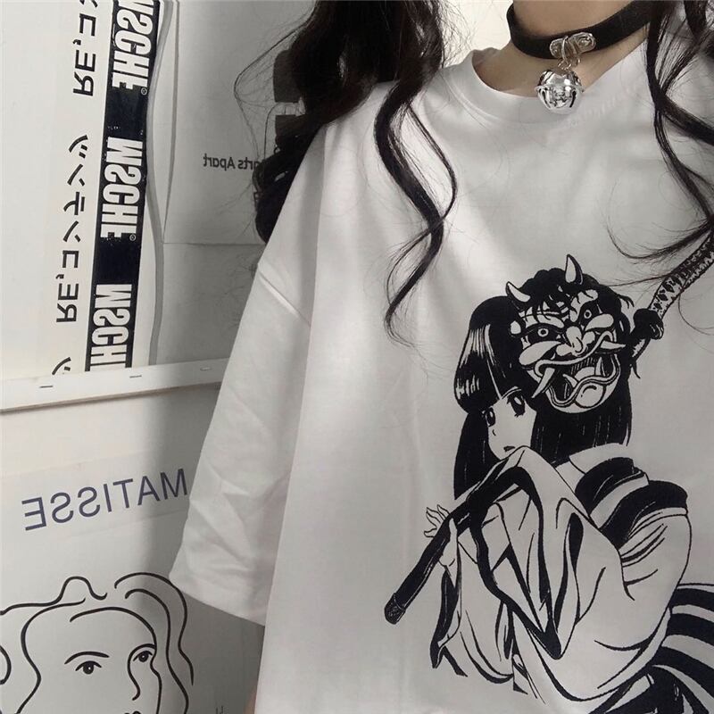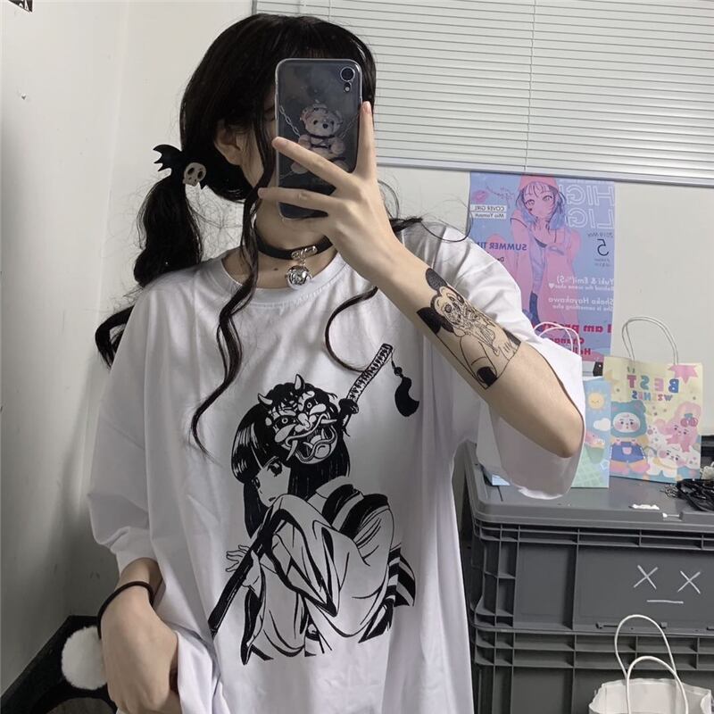 ホワイトトップス レディース夏服韓国ファッショントレンドプリントルーズTシャツ 夏物 スタイル デーモン49685131907