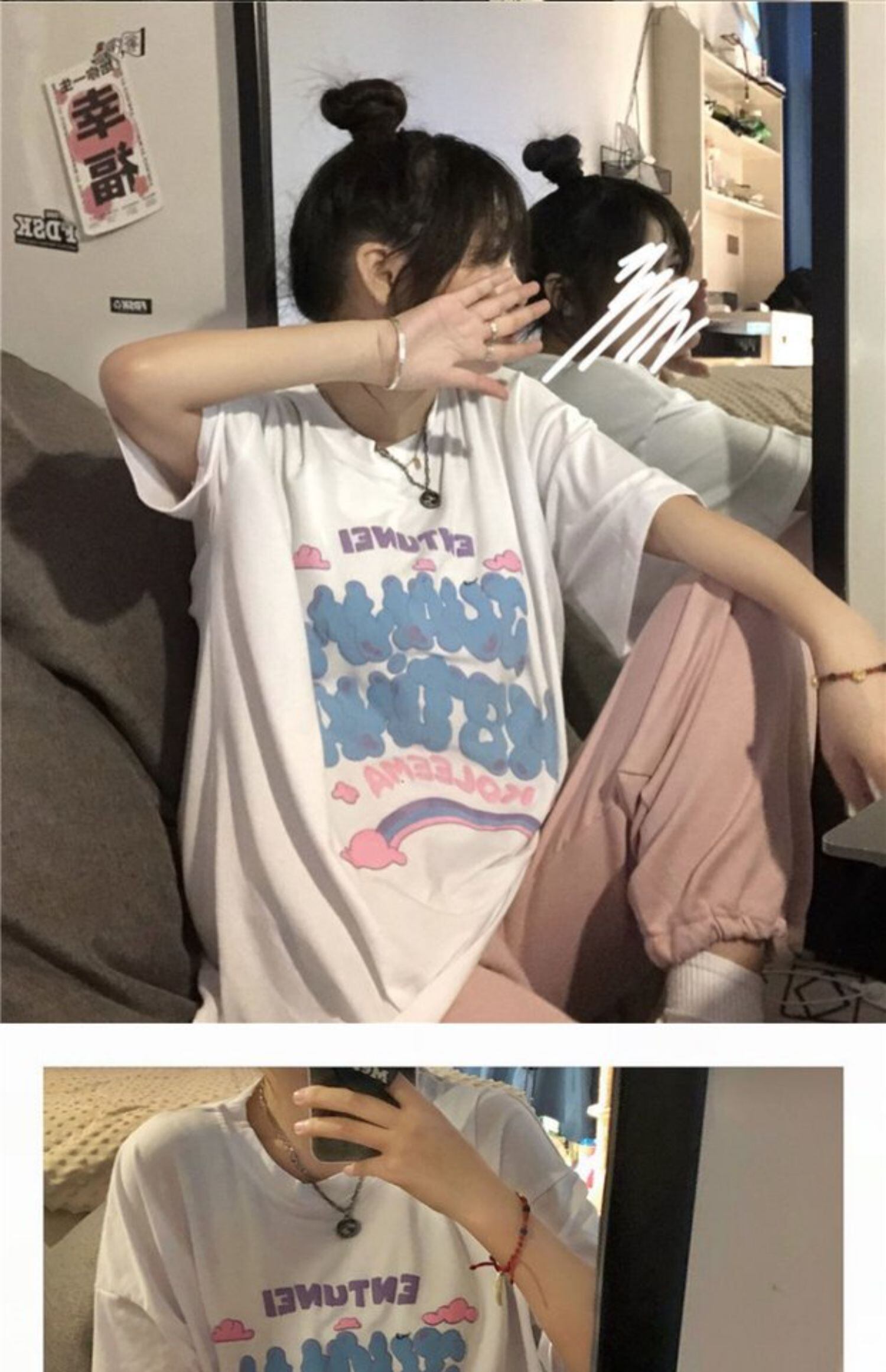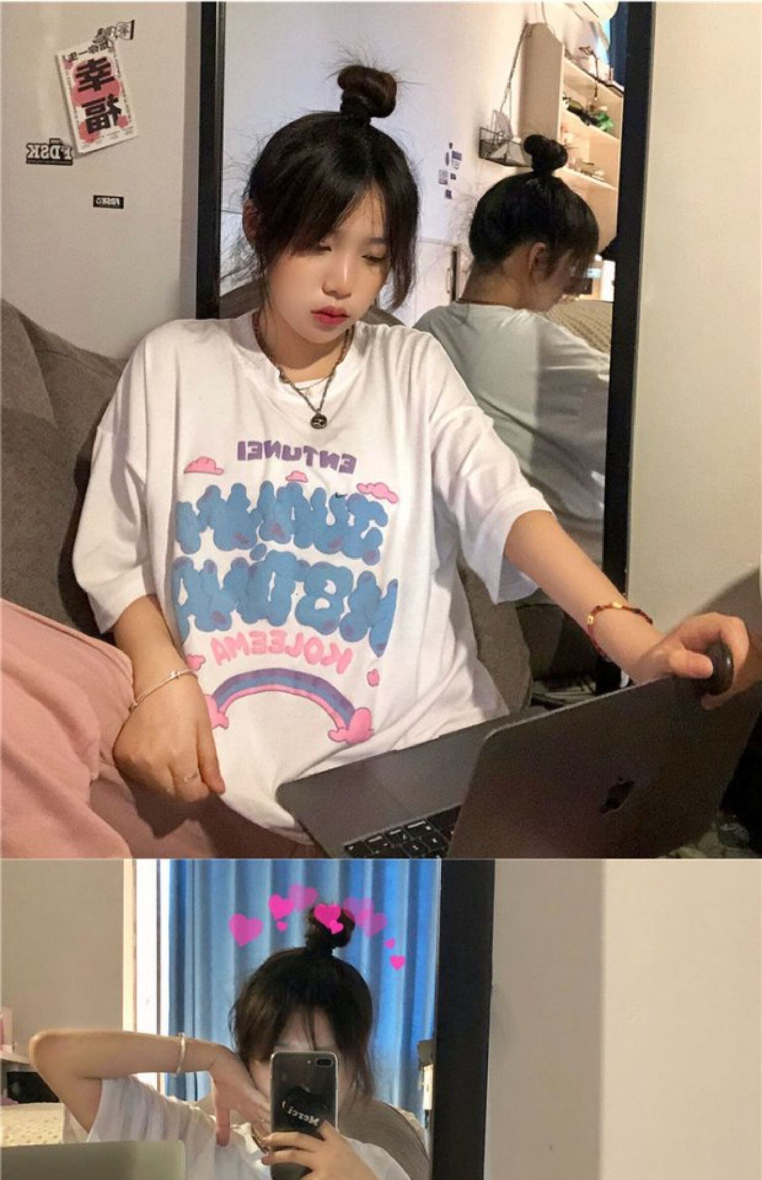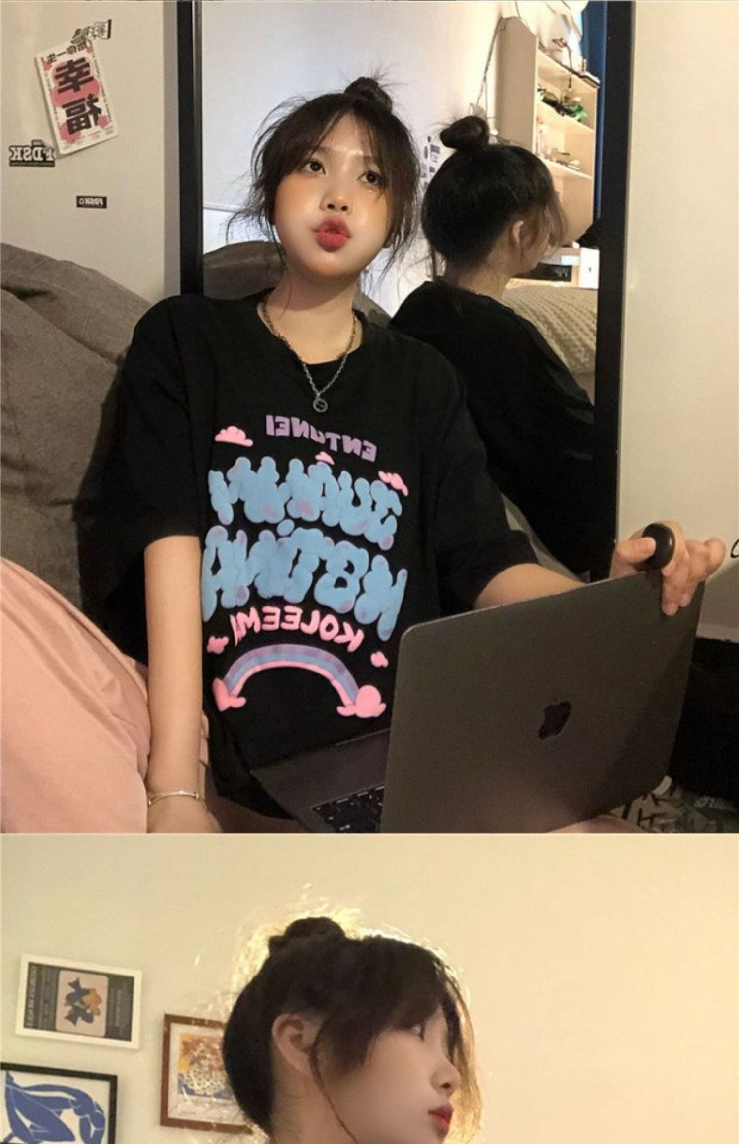 Tシャツレディース夏服韓国ファッショントレンドプリントルーズトップス 夏物 スタイル デーモン20125401516
