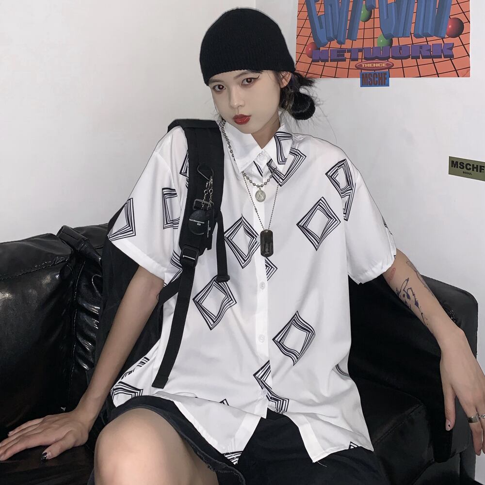 夏服シャツ レディーストレンドホワイトルーズカジュアル 夏物 デーモン18035229786