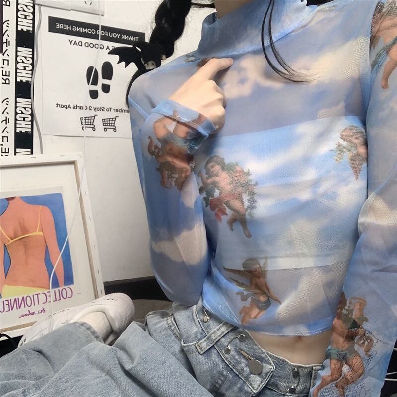 メッシュトップス レディース夏服韓国ファッショントレンドカラールーズ薄手Tシャツ ロング 夏物 ボーイズ スタイル 長袖 デーモン74837824955