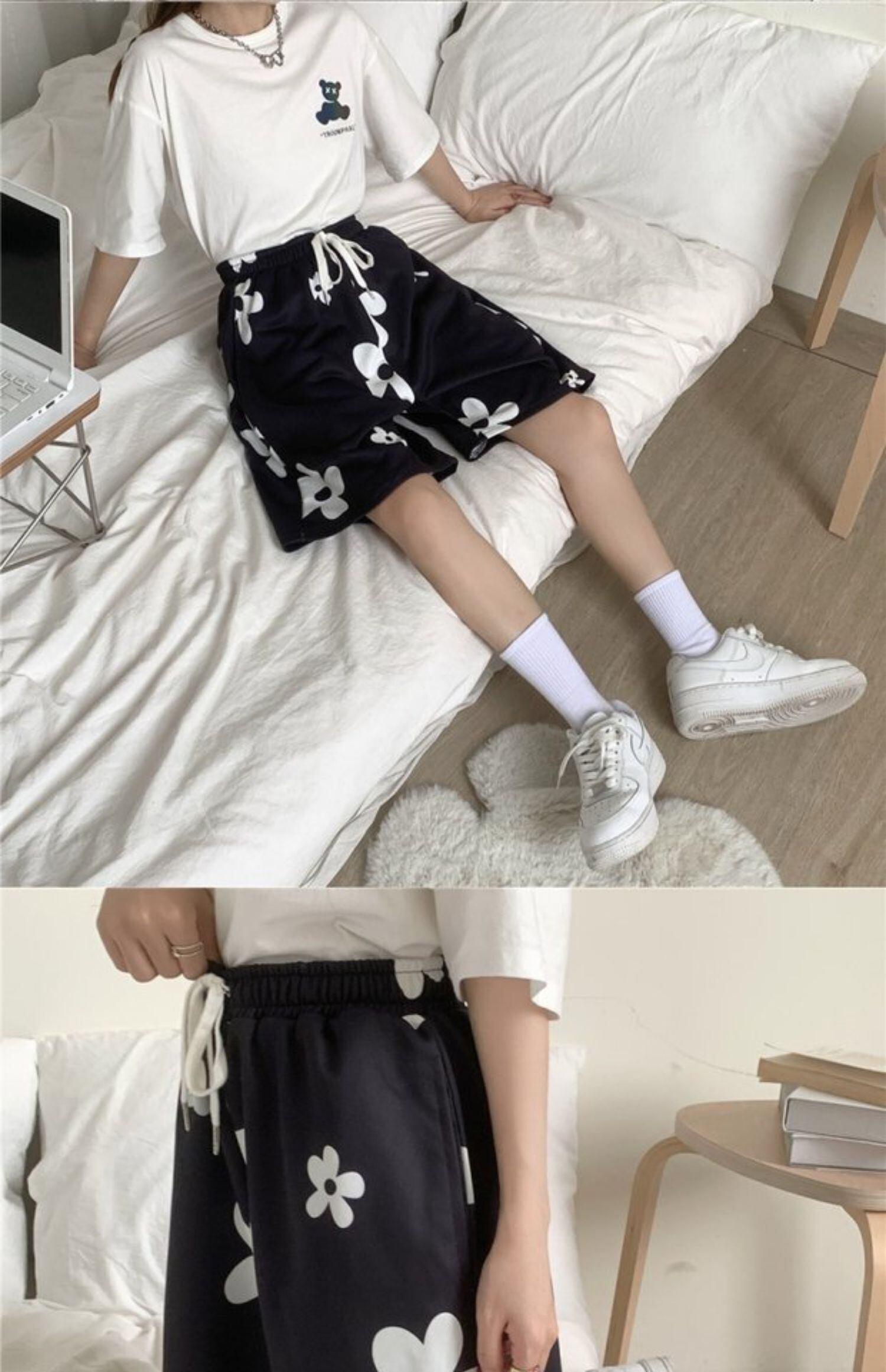 人気ショーツ レディース夏服トレンドパンツ ルーズハイウェストウェストカジュアル 夏物 フラワーデザイン ボーイズ ウエスト デーモン6764862340