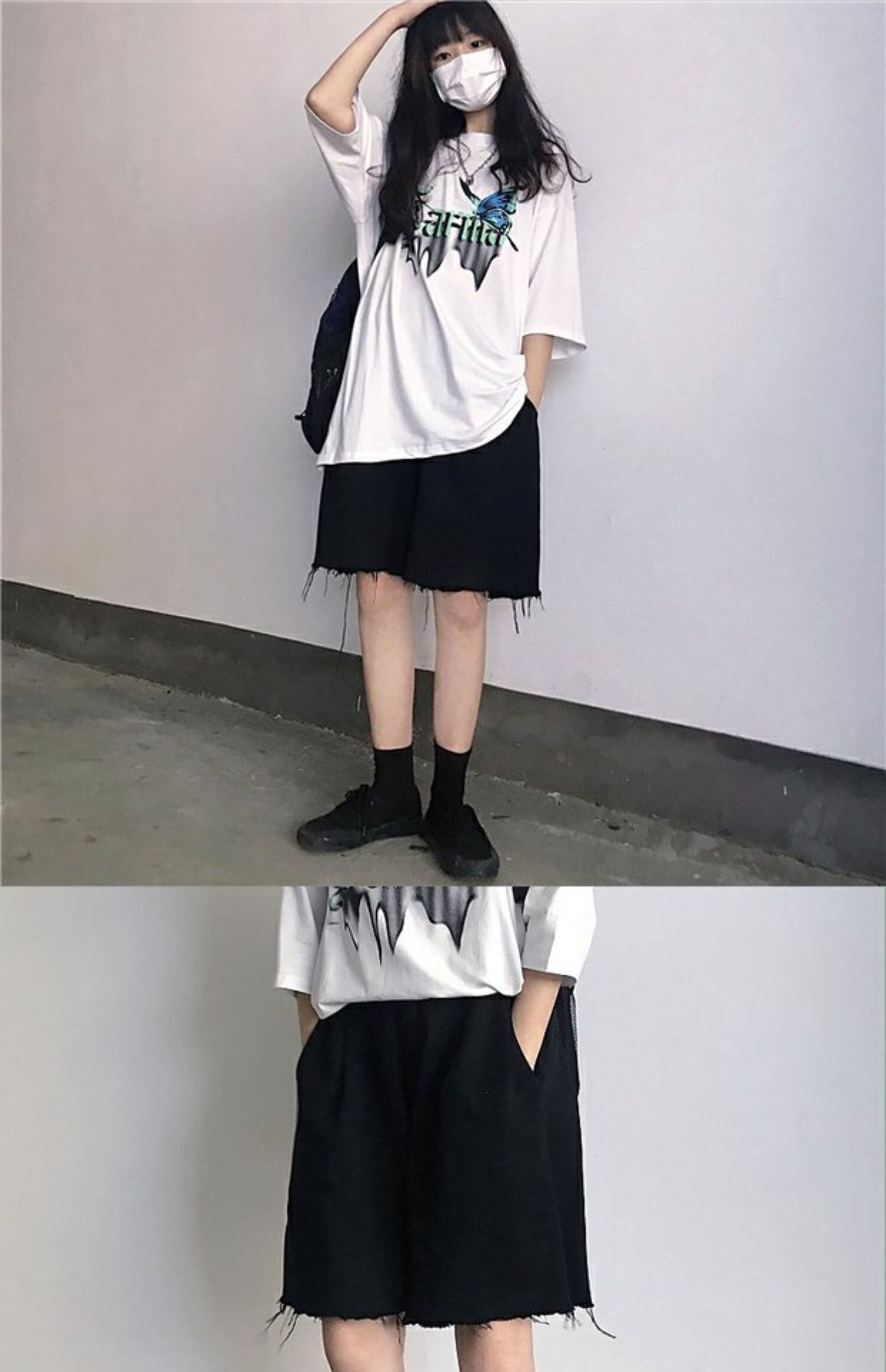 ブラックショーツ レディース夏服トレンドスタイルパンツ ルーズハイウェストウェスト薄手 原宿 夏物 ウエスト デーモン63986754554