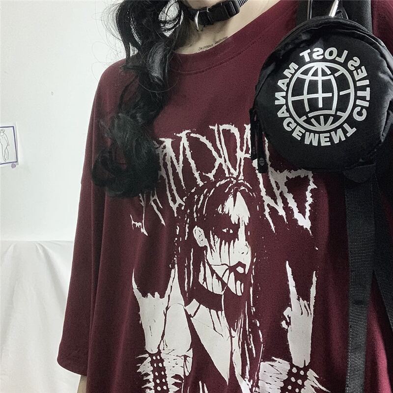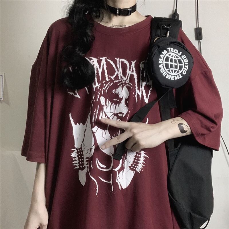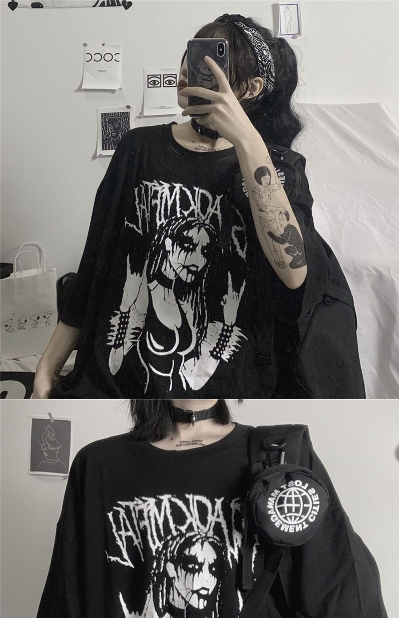 夏服トップス 韓国ファッショントレンドダークプリント柄ブラックルーズTシャツ 夏物 ボーイズ スタイル デーモン56973971195