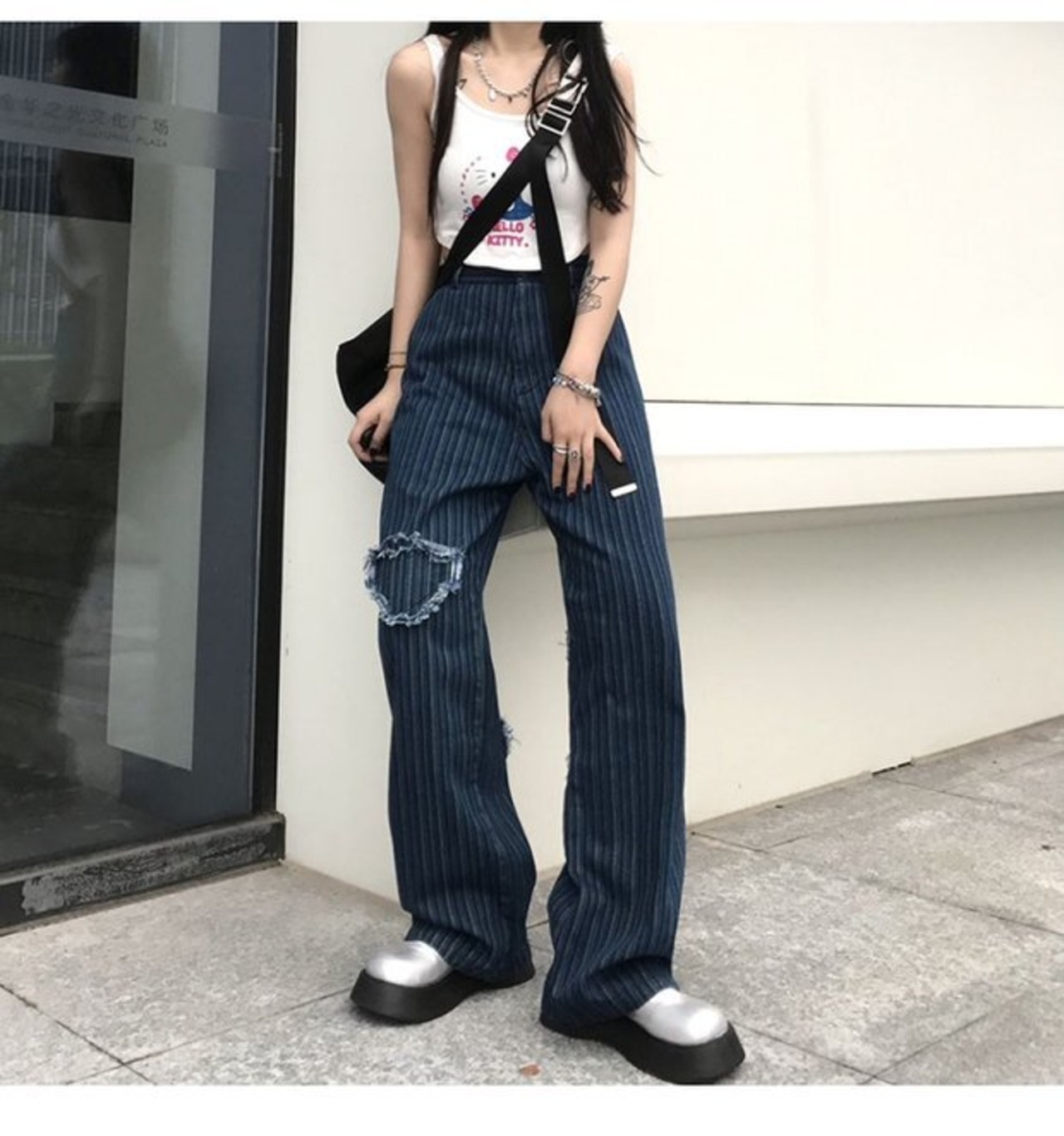 ジーンズ レディース夏服トレンドストライプワイドレッグパンツ ハイウェストウェストルーズ ストリート 夏物 ワイドパンツ ウエスト デーモン49255192621