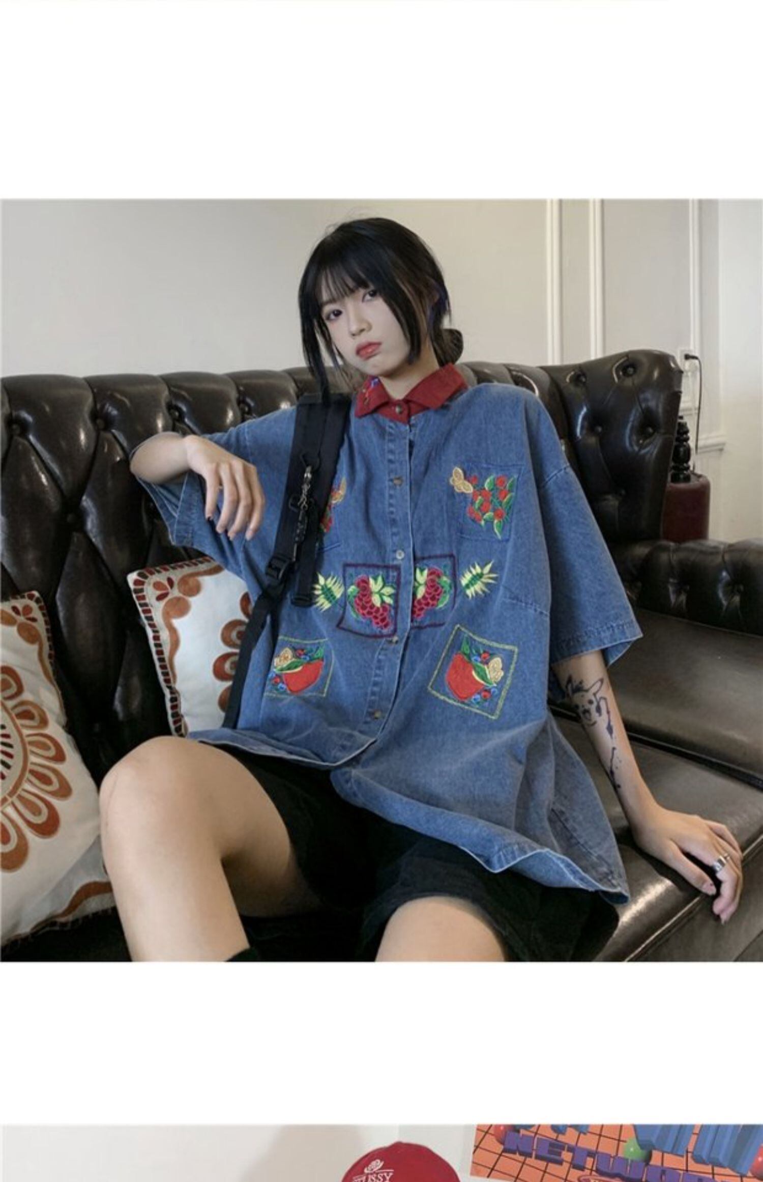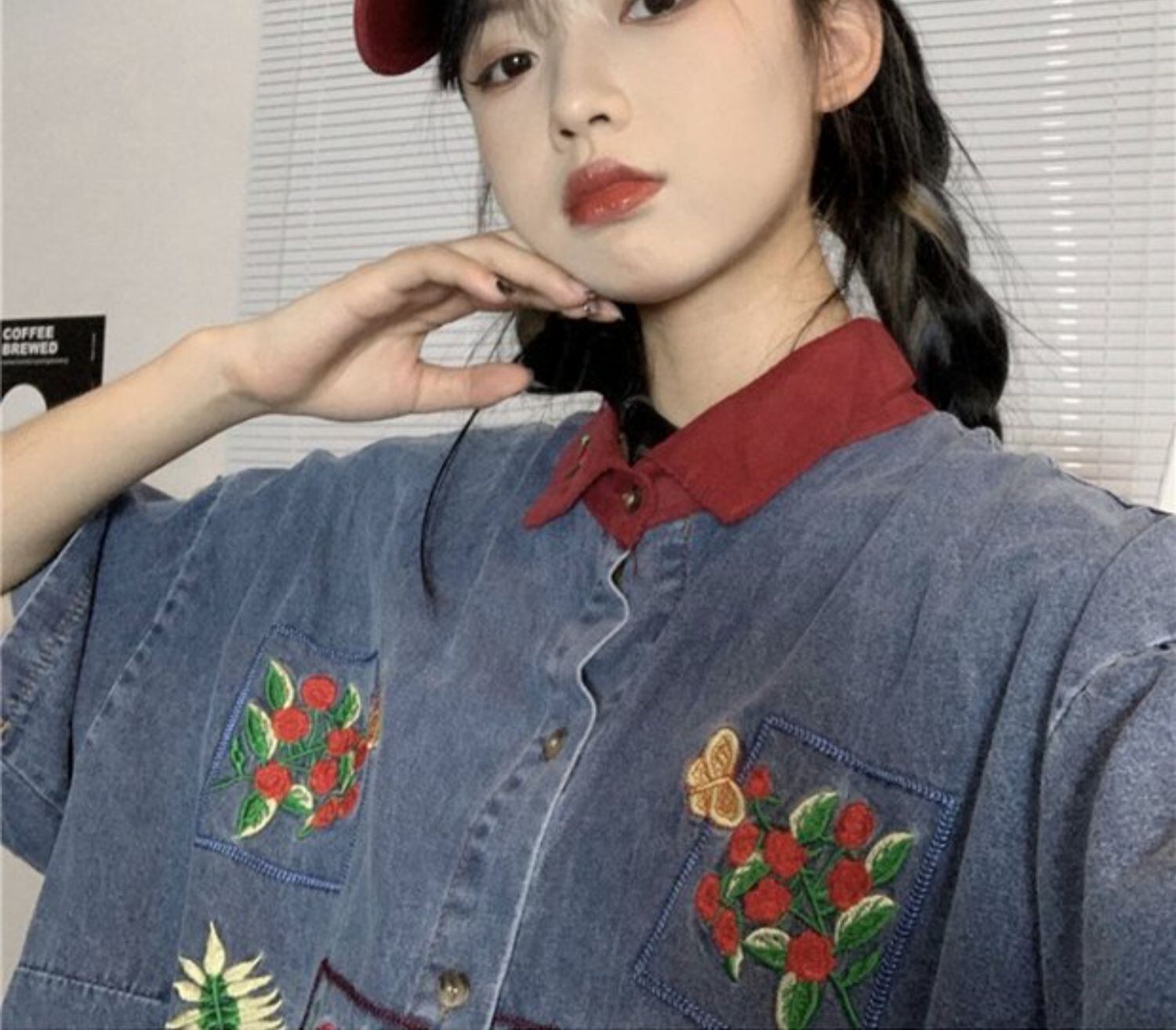 夏服シャツ レディーストレンドスタイルスタンダード刺繍ルーズトップス レトロ 夏物 ボーイズ デーモン92176873734