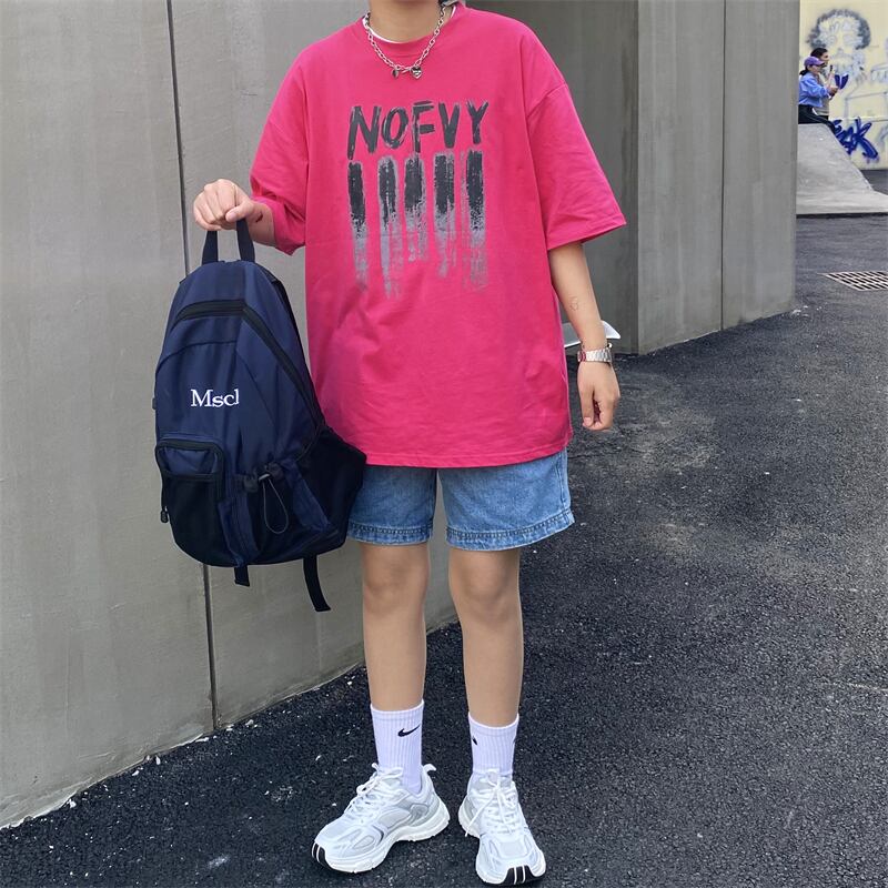 夏服Tシャツレディース韓国ファッショントレンドダークプリントホワイトルーズラウンドネックトップス 夏物 Oネック スタイル デーモン11101947508