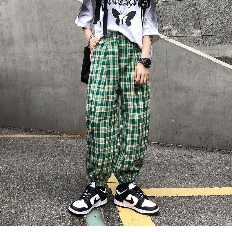 夏服格子柄パンツ レディーストレンドグリーンレギンス ルーズハイウェストウェストカジュアル 夏物 ボーイズ ウエスト デーモン42676311667