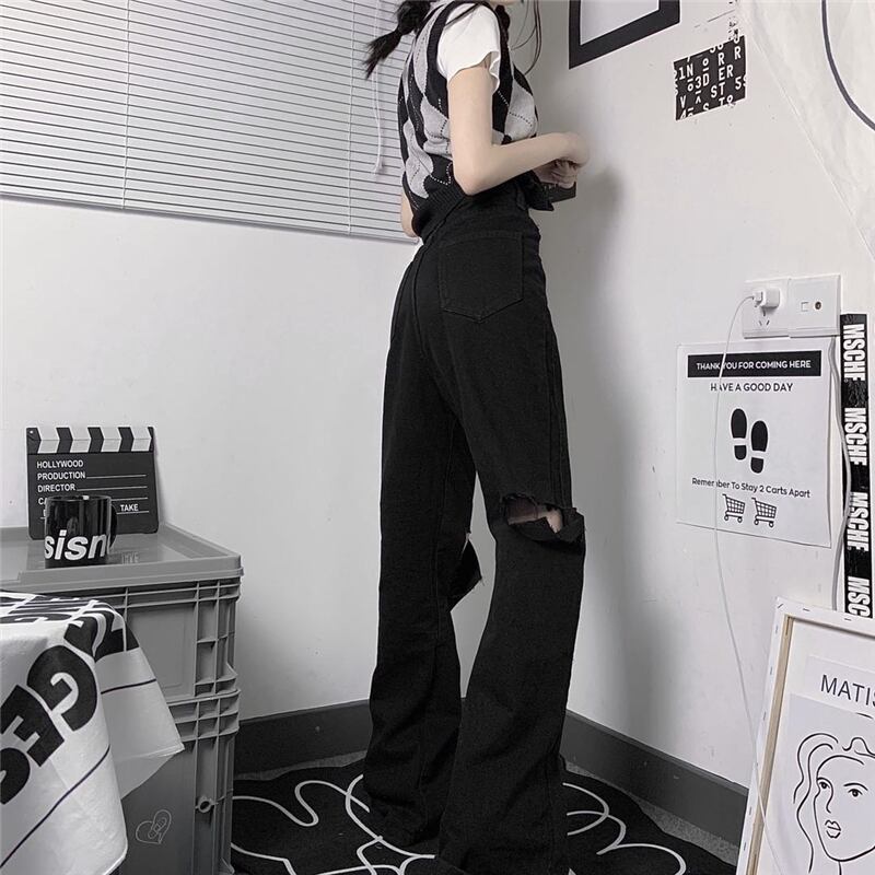 ブラックジーンズ 夏服トレンドスタンダードパンツ ルーズハイウェスト レトロ 夏物 ウエスト デーモン11968311355