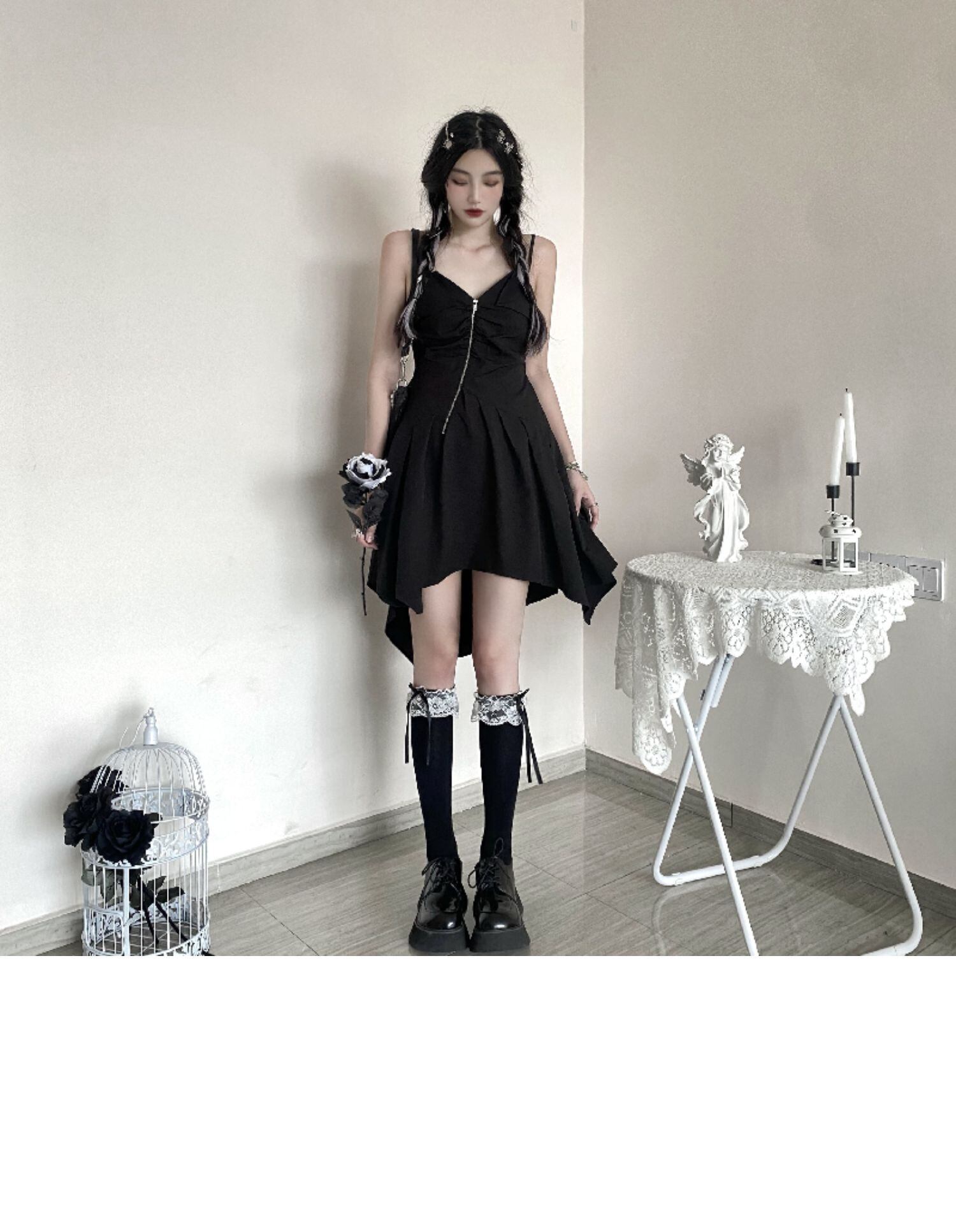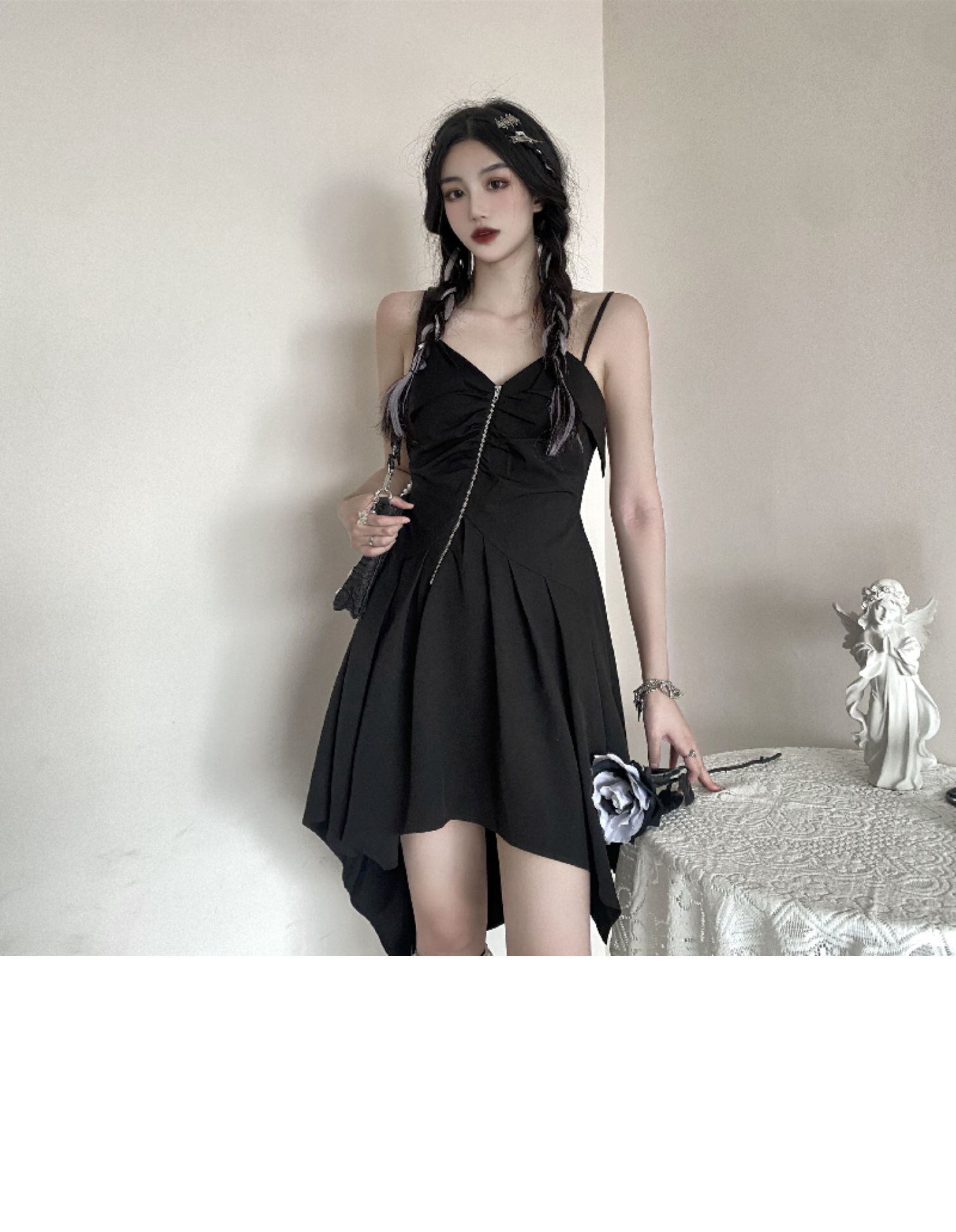 ブラックワンピースレディース夏服トレンドウェストスカート 薄手 夏物 ウエスト デーモン32600590744