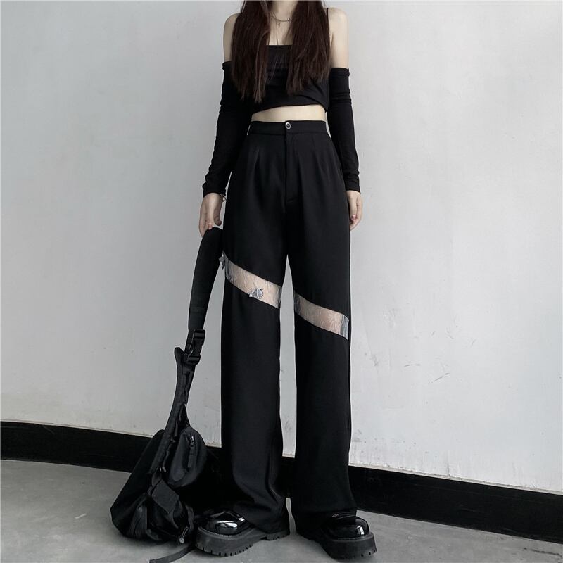 パンツ レディース夏服トレンドレースハイウェストウェストルーズカジュアル 夏物 ステッチ ウエスト デーモン36464358209
