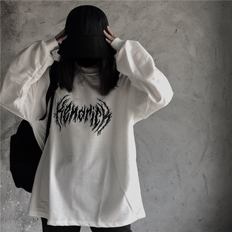 セーター レディース夏服薄手韓国ファッショントレンドプリントルーズヴィンテージホワイトTシャツ ロング 夏物 ビンテージ ボーイズ 長袖 デーモン14118132828