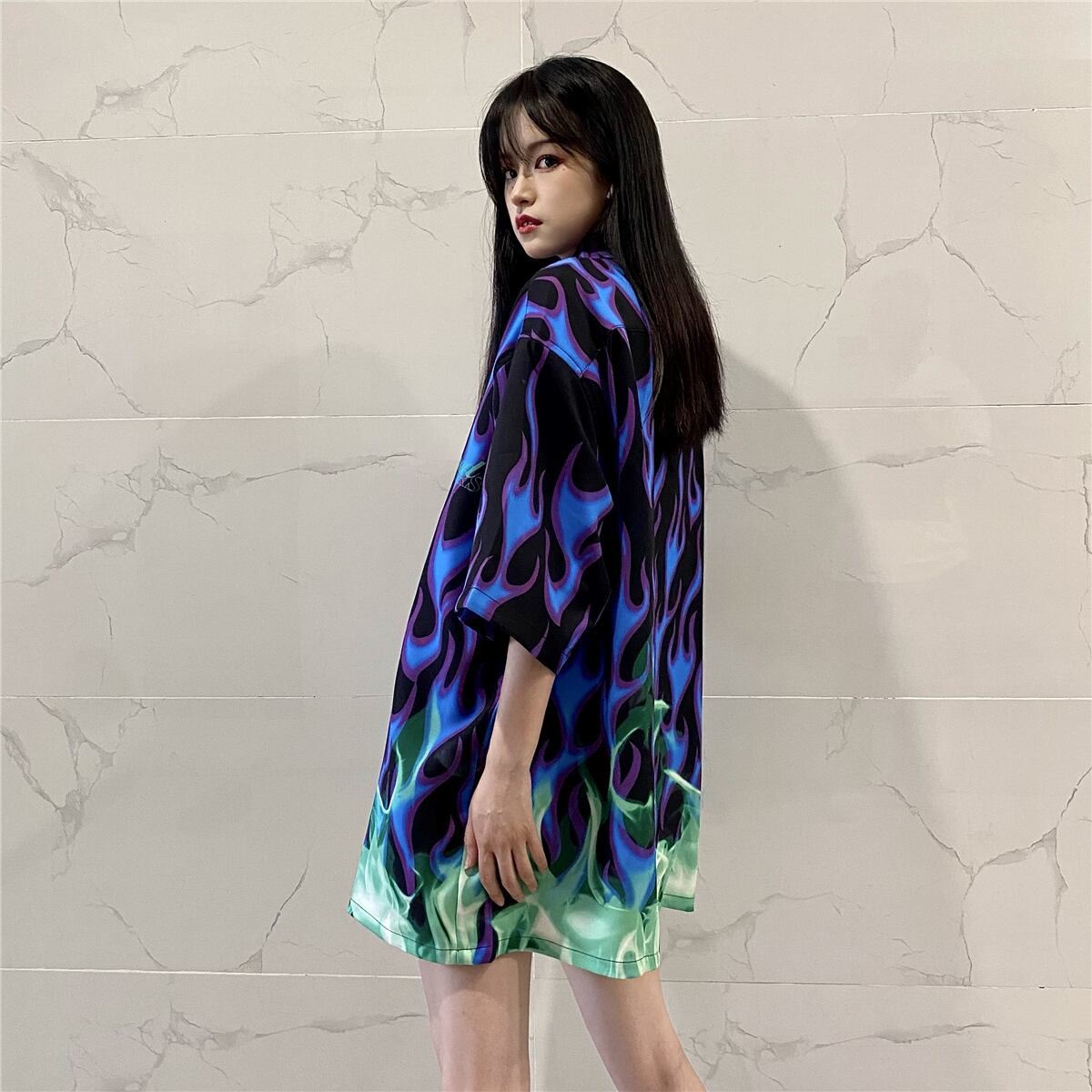 夏服ブループリントルーズシャツ カジュアルレディース 夏物 ボーイズ デーモン24309261766