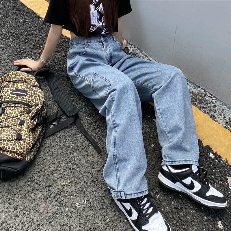 ウェストジーンズ レディース夏服トレンドスタイルパンツ ルーズ薄手 原宿 夏物 ポケット多め マルチポケット ウエスト デーモン44483627146