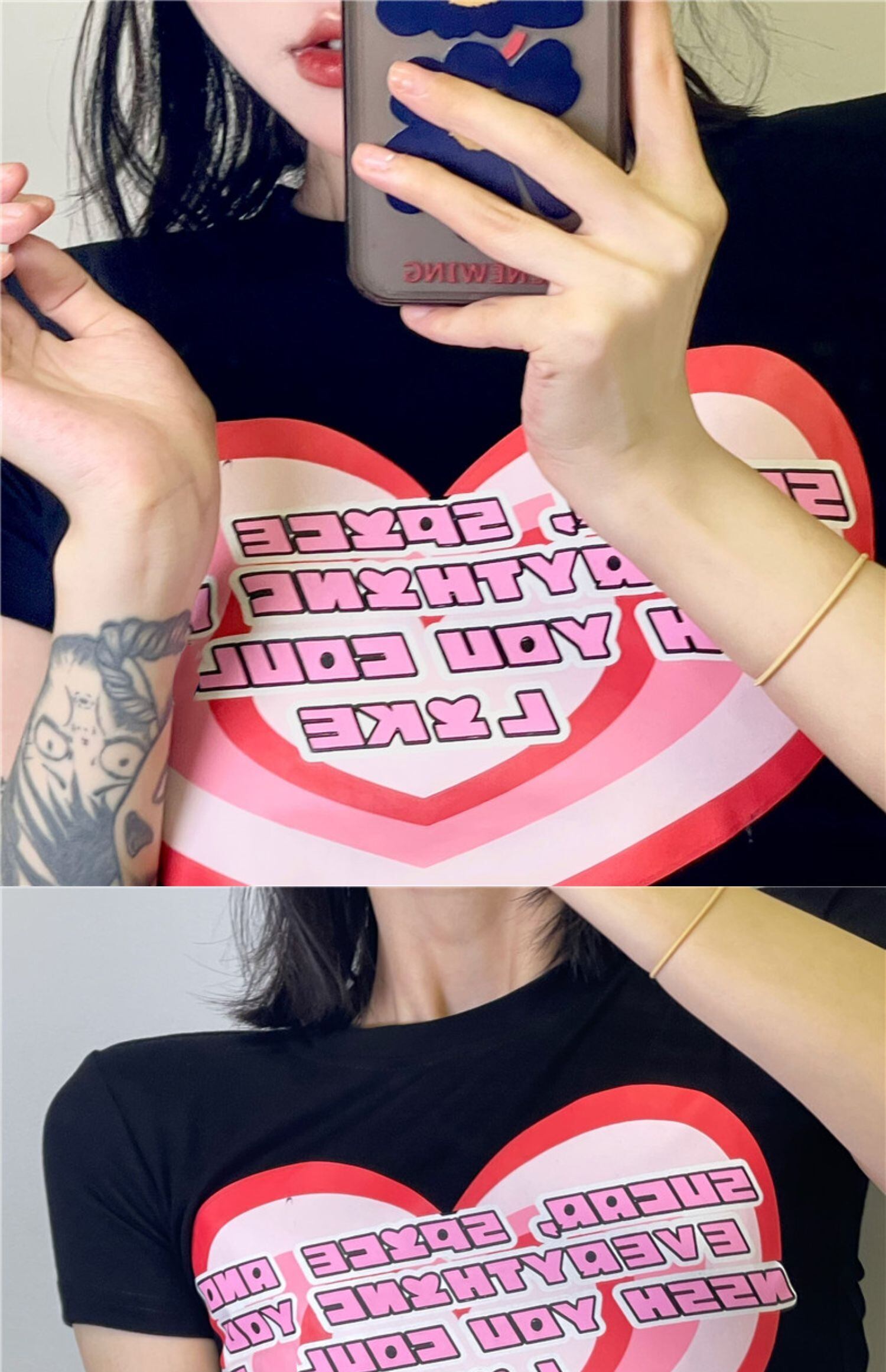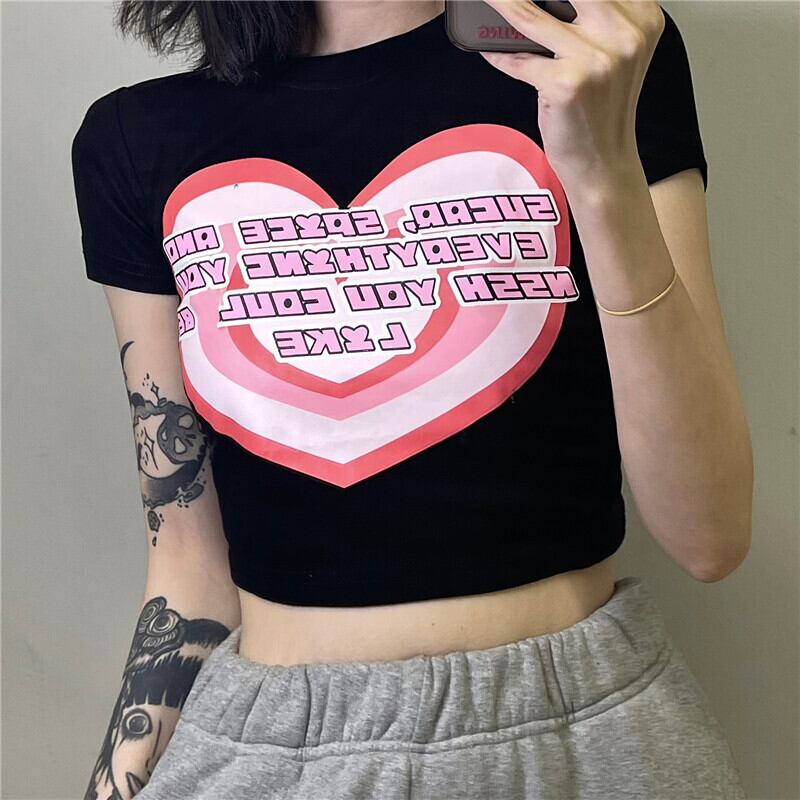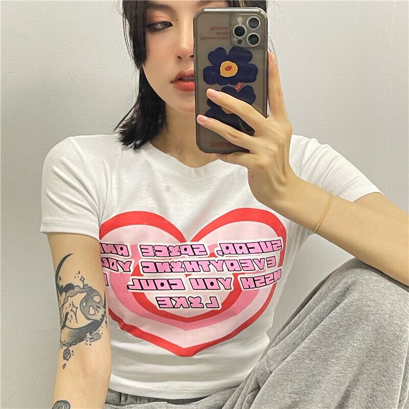 ショートTシャツ夏服韓国ファッショントレンドプリントスリムトップス 夏物 スタイル デーモン83688304731