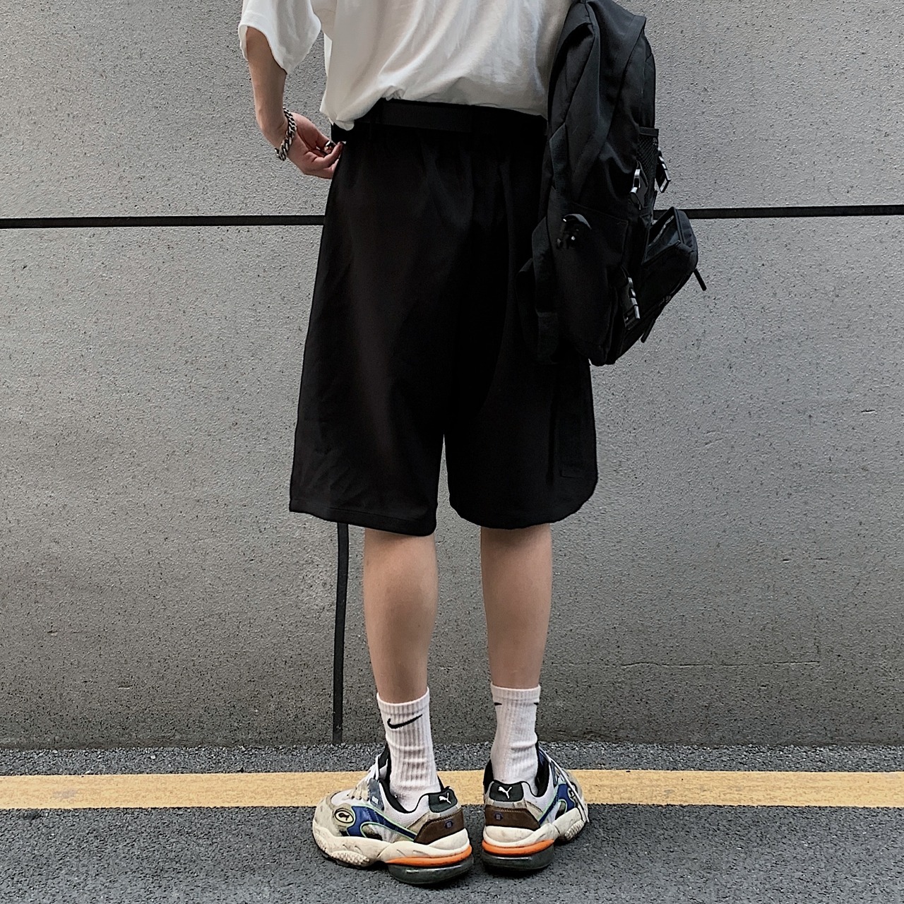 ショーツ レディース夏服トレンドスタイルブラックパンツ ルーズハイウェストウェストワイドレッグ 夏物 ワイドパンツ ボーイズ ウエスト デーモン74830475912