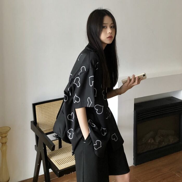 夏服韓国ファッショントレンドスタンダードルーズダークプリントシャツ レディース レトロ 夏物 CHIL25268162832