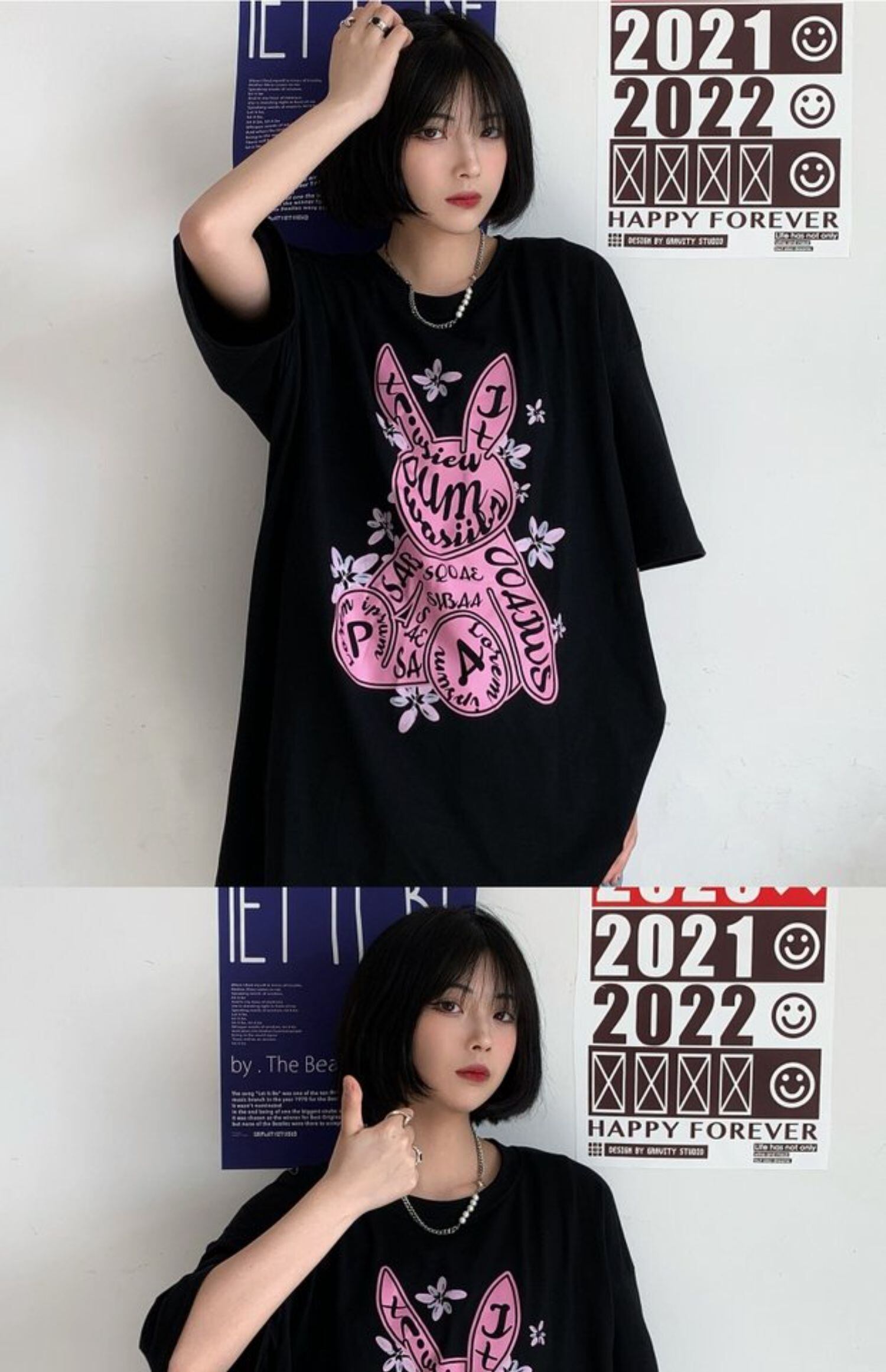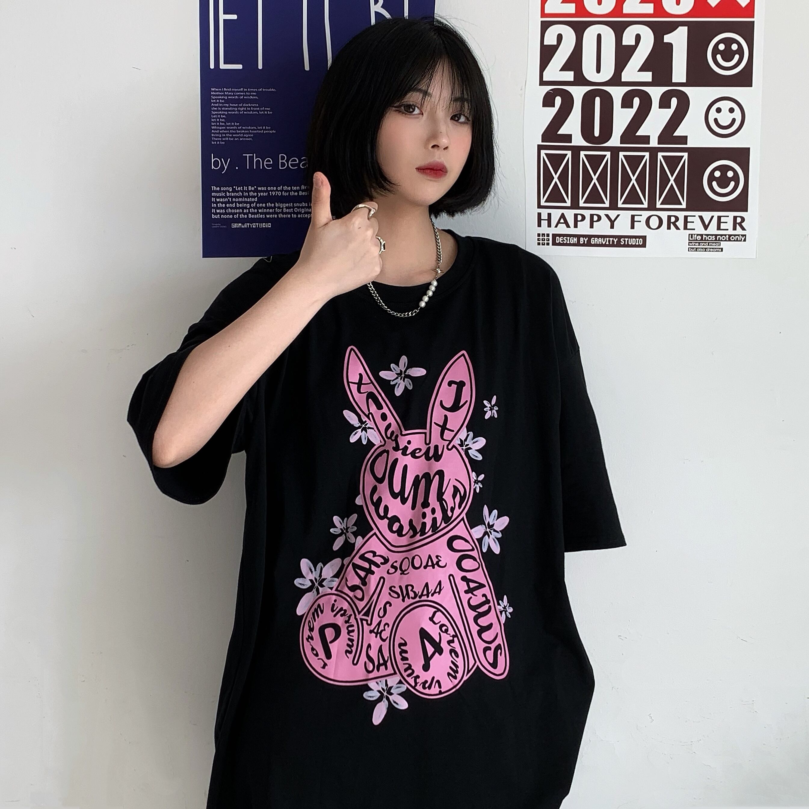 Tシャツレディース夏服韓国ファッショントレンドプリントホワイトルーズラウンドネックトップス 夏物 Oネック スタイル デーモン24978974534