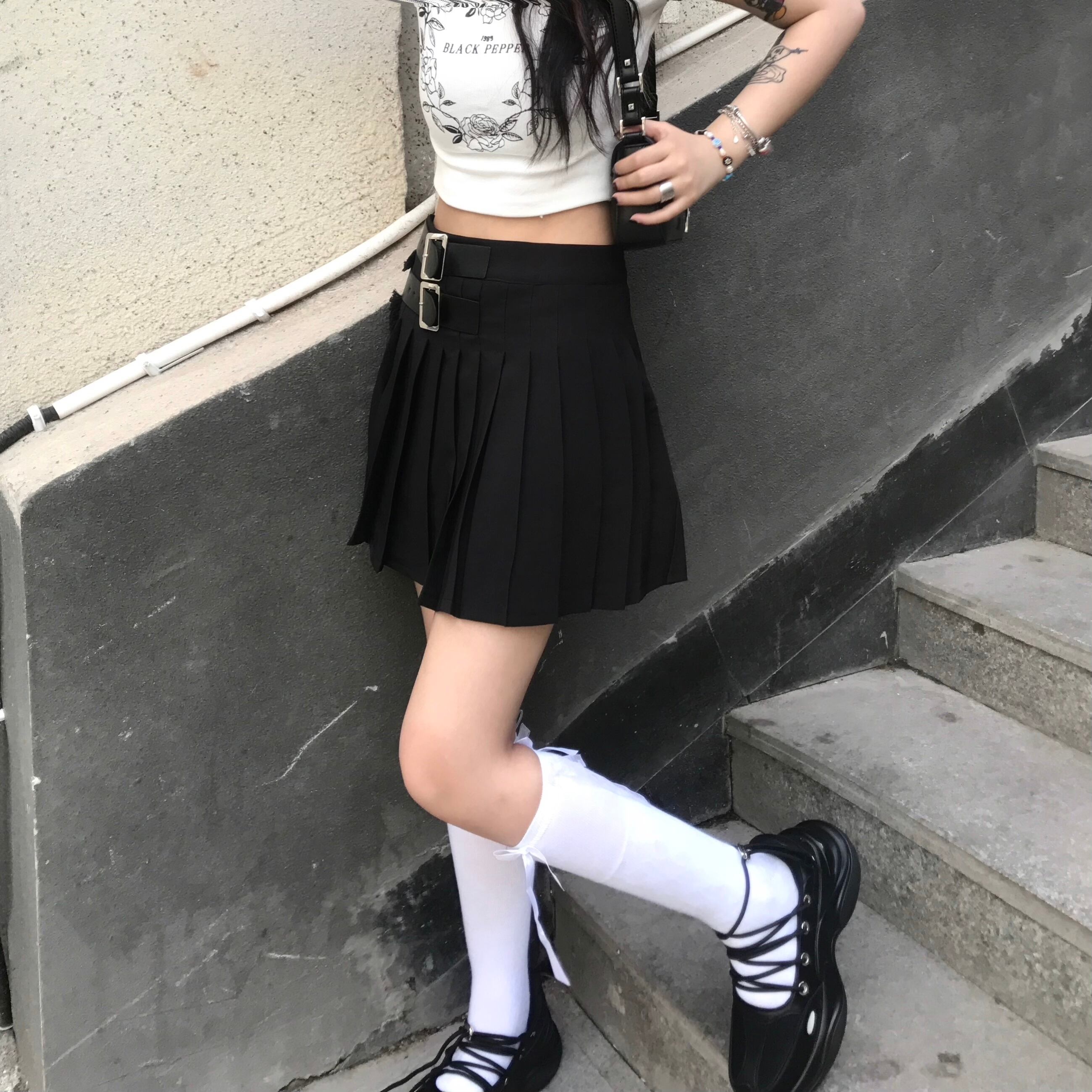 夏服韓国ファッションゴールドバックルベルト プリーツスカート レディース 夏物 ハーネス スタイル CHIL45213934669