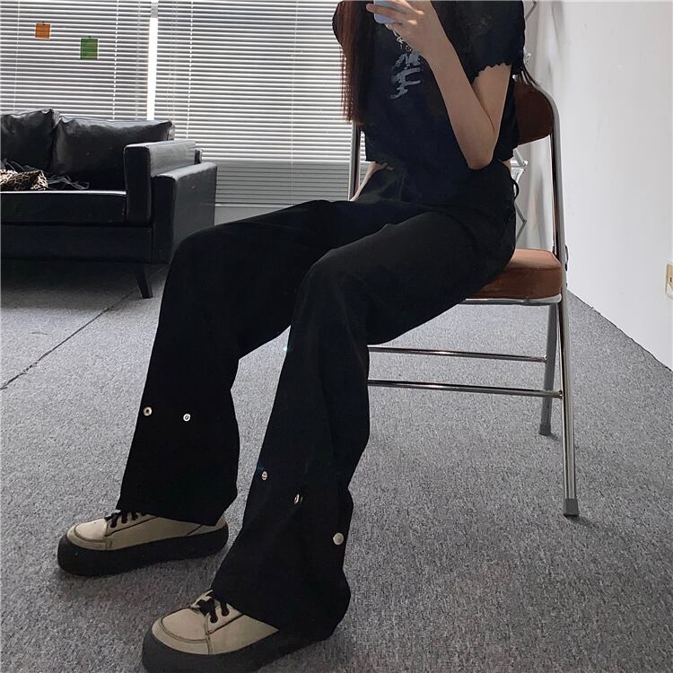 トレンドスタンダードブラックバックルルーズ薄手カジュアルパンツ 夏服 レトロ 夏物 CHIL30056745433