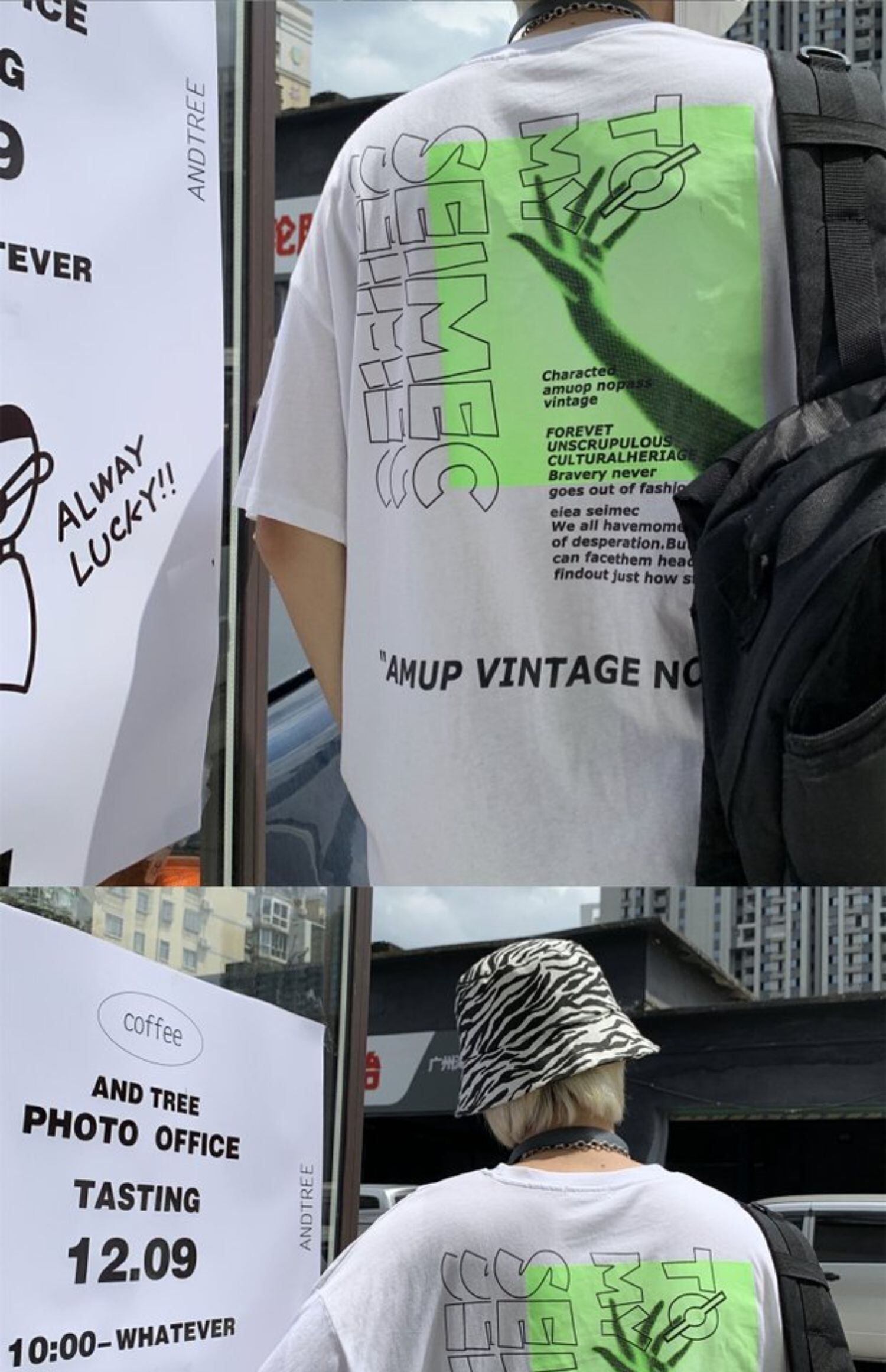 Tシャツ夏服レディース韓国ファッショントレンドプリントラウンドネックルーズトップス 夏物 Oネック スタイル デーモン65349113575