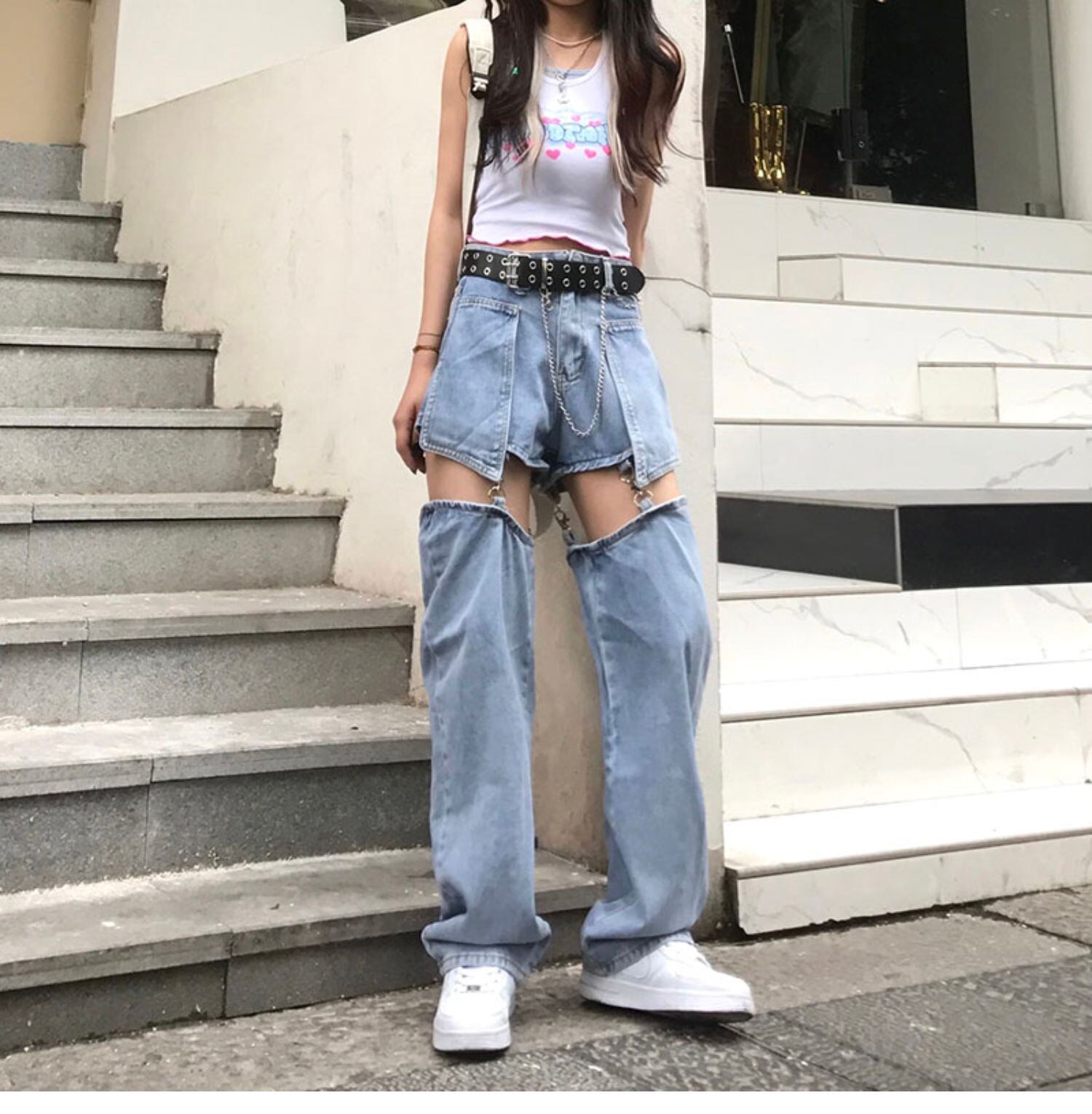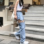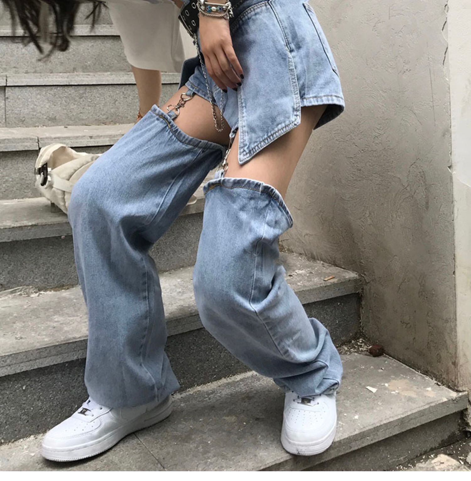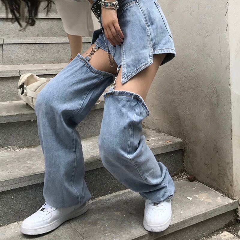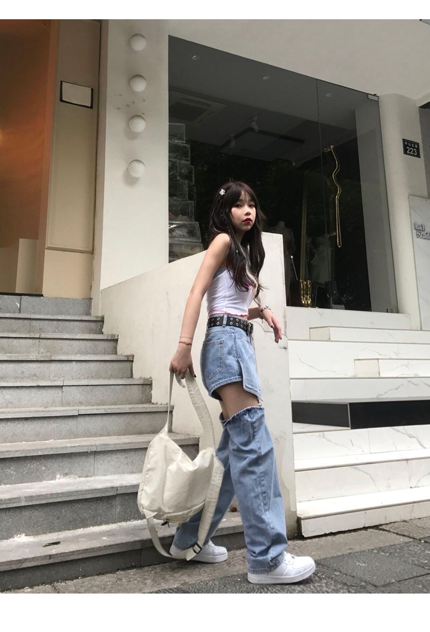 ジーンズ レディース夏服トレンドワイドレッグパンツ ルーズハイウェストウェスト ストリート 夏物 ワイドパンツ ウエスト デーモン38850604587