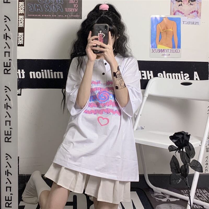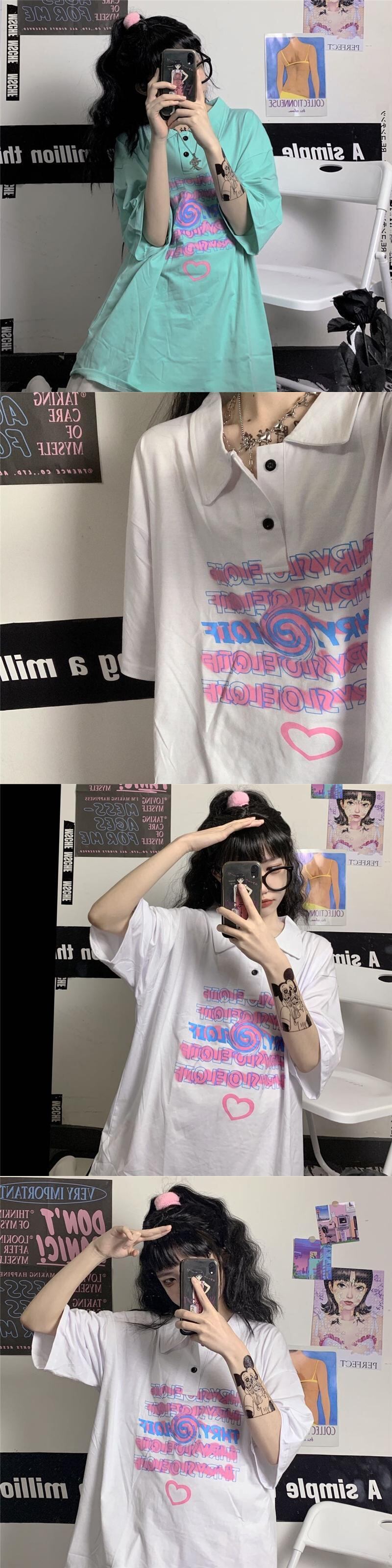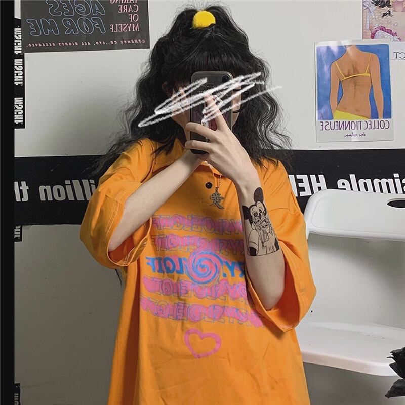 Tシャツレディース夏服韓国ファッショントレンドカラープリントルーズトップス 夏物 スタイル デーモン83075954202